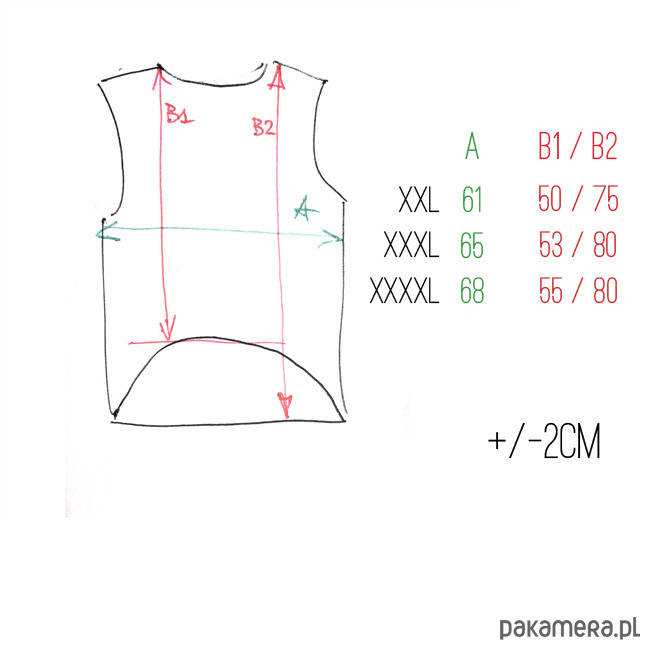 Uwaga! Ogromny oversize: rozmiary XXL, XXXL i XXXXL. Szczegóły na rysunku. Modelka na zdjęciach nosi 38/M i ma na sobie rozmiar XXXL.