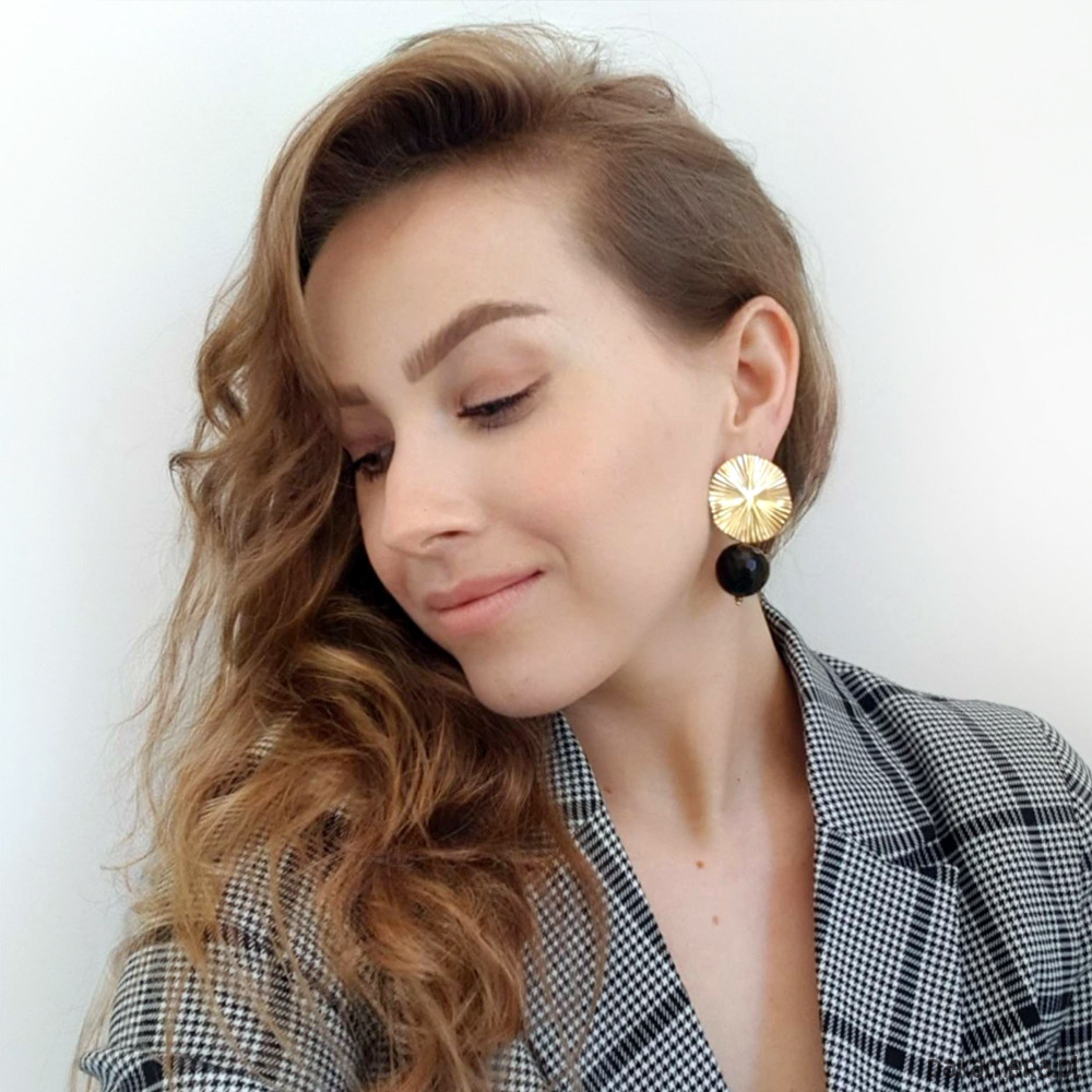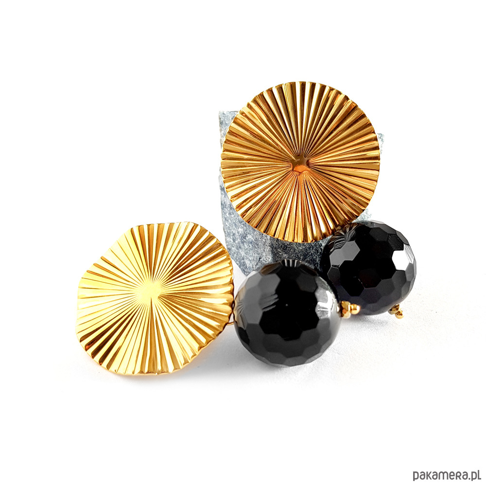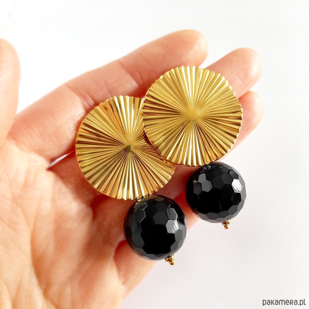 Kolczyki wykonane ręcznie z metalowych baz ze stali chirurgicznej oraz dużych kul onyksu (20 mm)