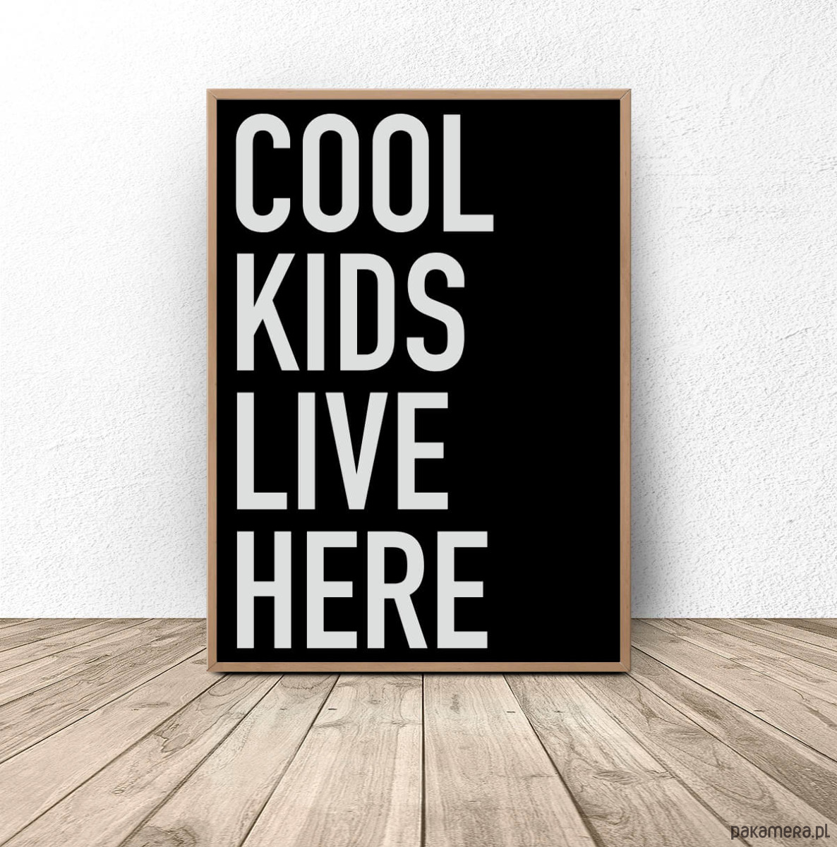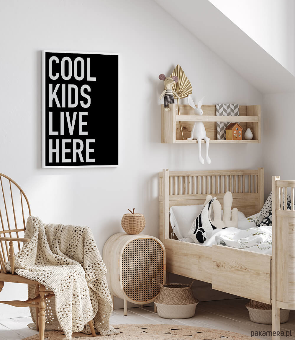 Czarny plakat z napisem "Cool kids live here" dostępny w różnych rozmiarach do wyboru