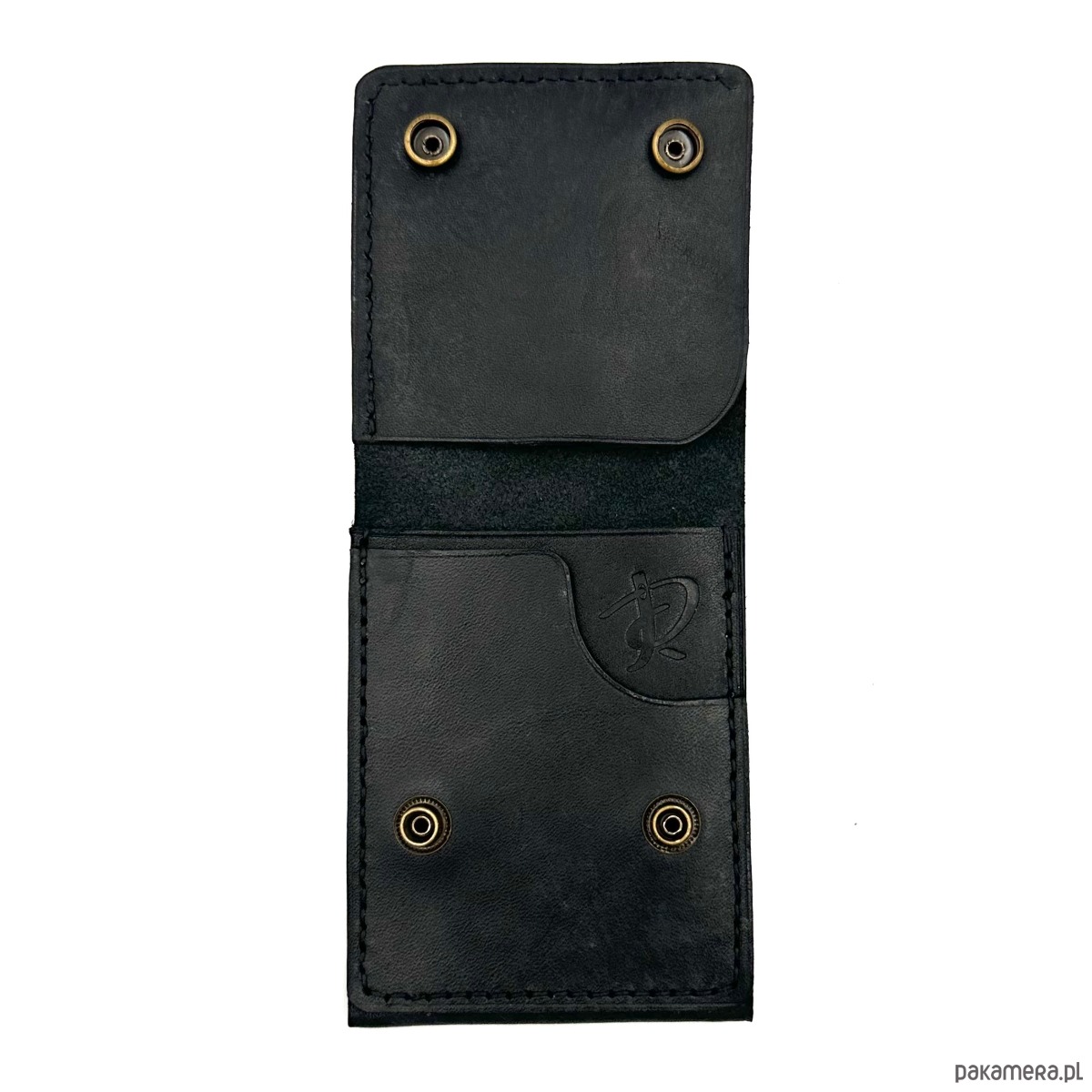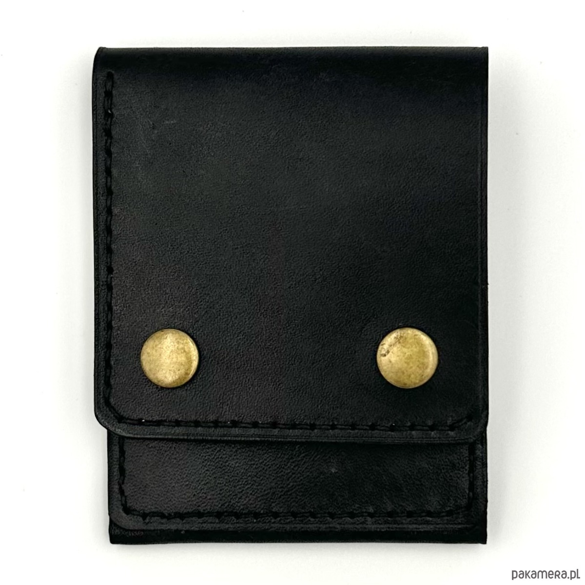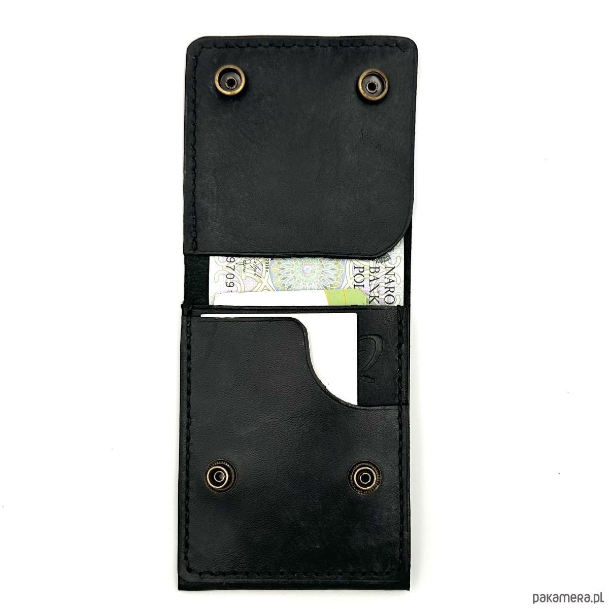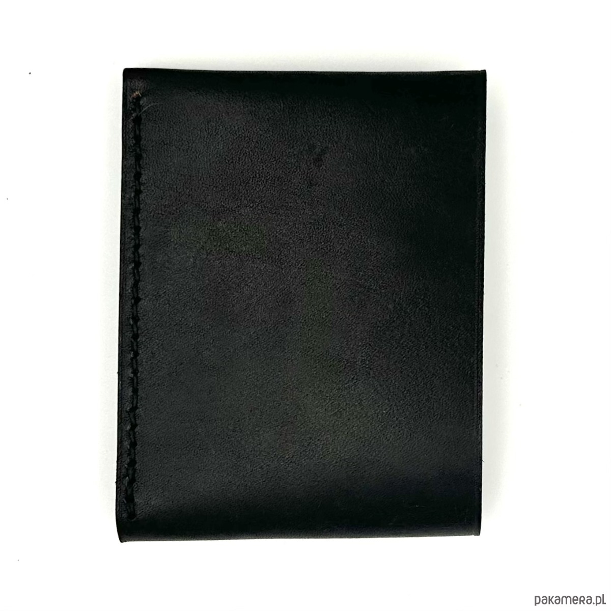 Czarny portfel skórzany ręcznie uszyty na karty.