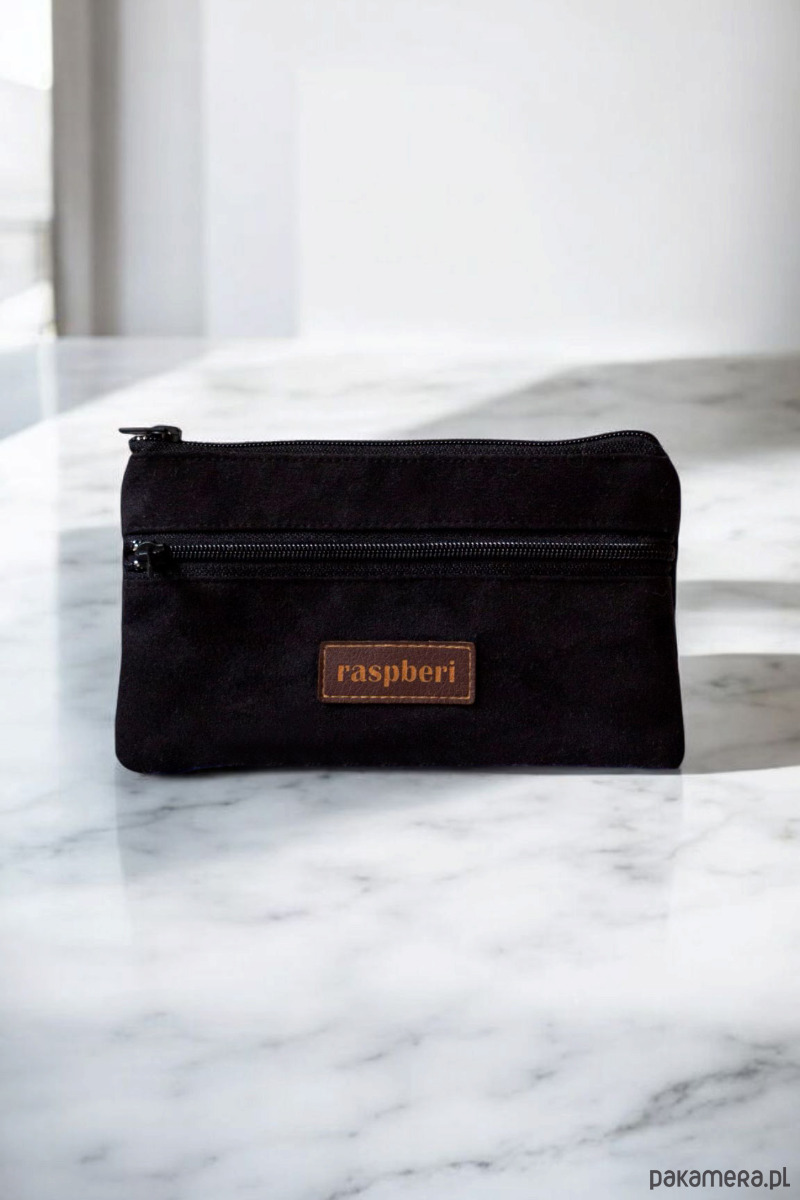 Prosty wodoodporny portfel wykonany z czarnego nubuku.