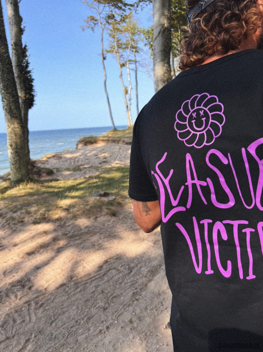 DŁUGI, CZARNY T-SHIRT PLEASURE VICTIM.