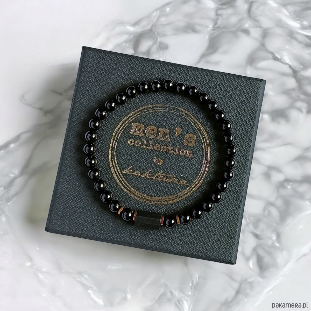 Bransoletka wykonana z czarnego turmalinu w dwóch formach (bryłka surowa, ciosana oraz gładkie kule błysk 6mm).