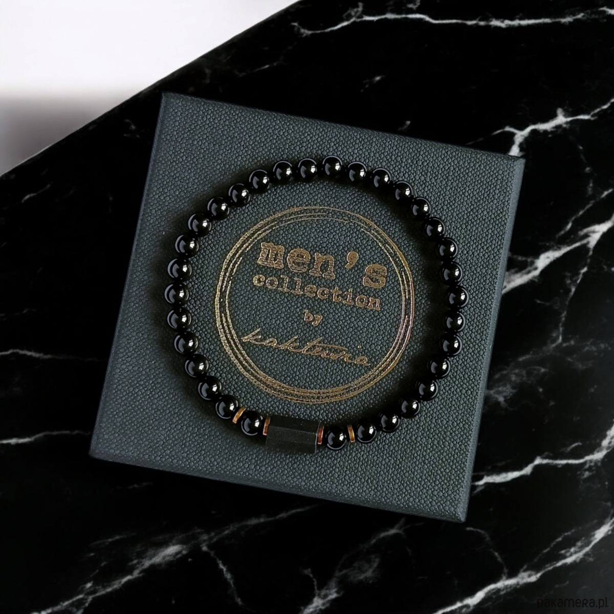 Dodatkowo: delikatne przekładki ze złotego hematytu.