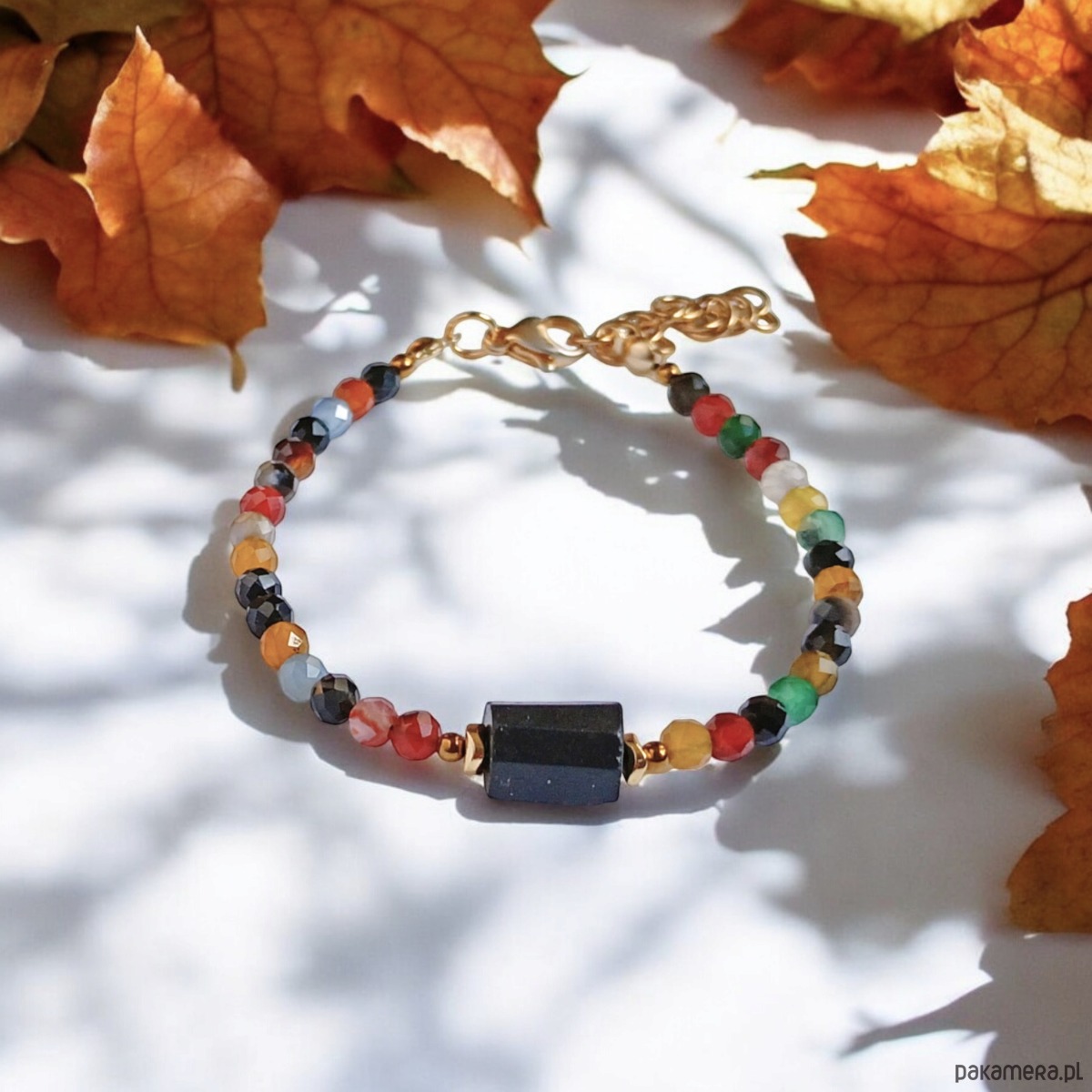 Czarny turmalin i agat jesienny : bransoletka z regulacją
