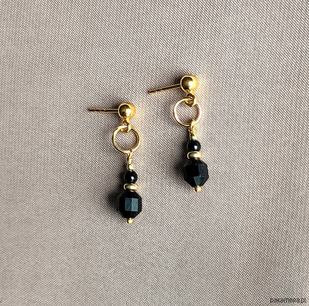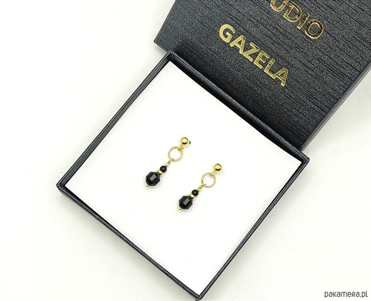 Czarny turmalin, kolczyki pozłacane wiszące delikatne
