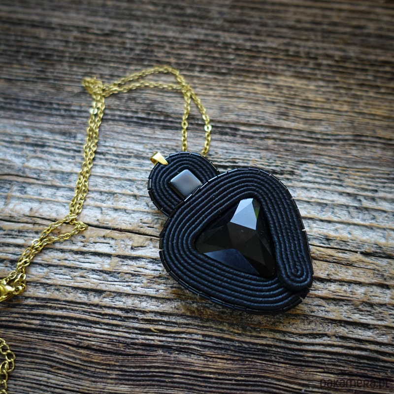🔹 Materiały: szklane kaboszony, koraliki bugle, sznurki soutache