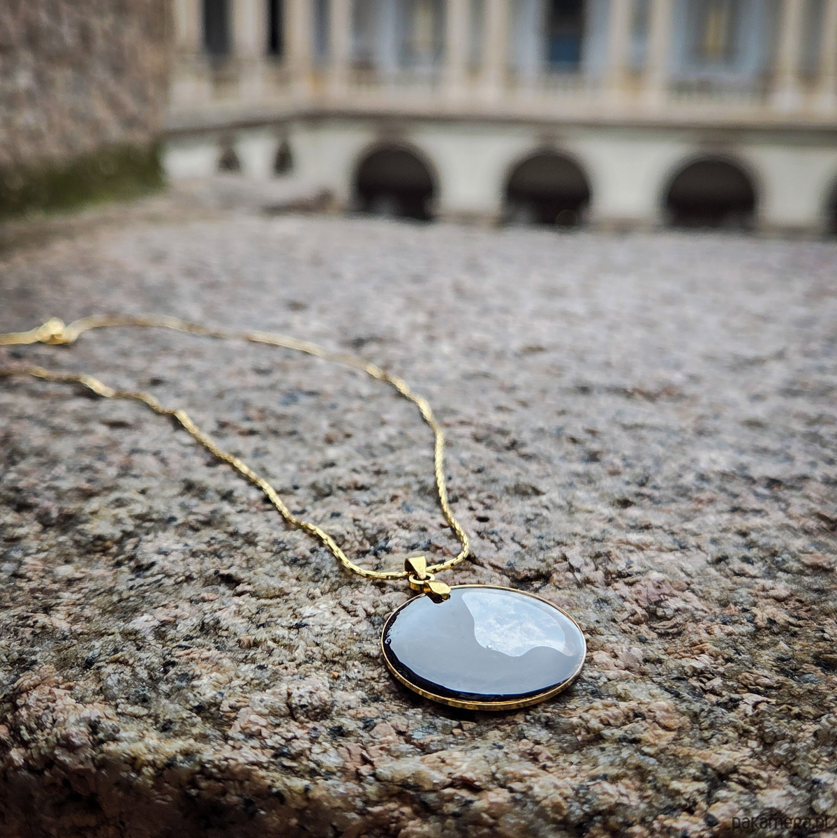 Łańcuszek ze stali chirurgicznej, długość całego naszyjnika 27cm, średnica oczka 2.5 cm