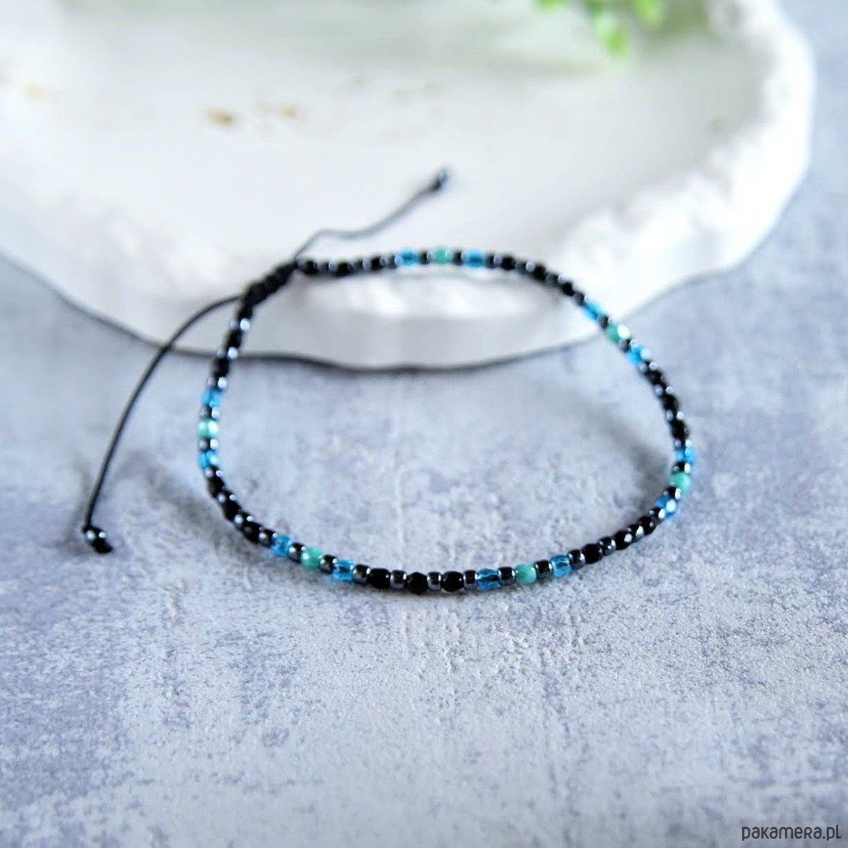 Bazą bransoletki jest bardzo mocny sznurek z wiązaniem, które umożliwia regulowanie obwodu.