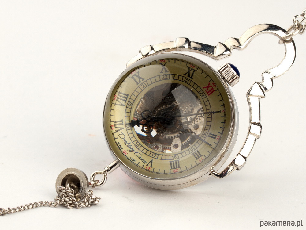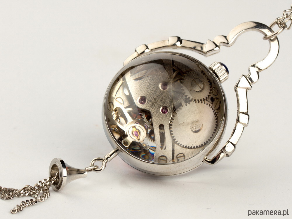 Chcielibyśmy zaproponować Państwu przepiękną rzecz, którą z pewnością wzbudzicie zachwyt w towarzystwie. Egzemplarz ten jest unikalnym wisiorem, jednocześnie pełni funkcję zegarka, stylizowana wzorem z roku 1856, przyciąga wzrok swoją oryginalnością, niepowtarzalnością i pięknem. Wisior wykonany jest z niezwykłą precyzją a całość zatopiona jest w szklanej, przezroczystej, delikatnie powiększającej kuli, pozwalającej na obserwację działania duszy zegarka.