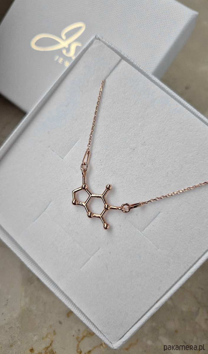 Naszyjnik z geometryczną zawieszką w kształcie wzoru molekularnego czekolady (Teobrominy).