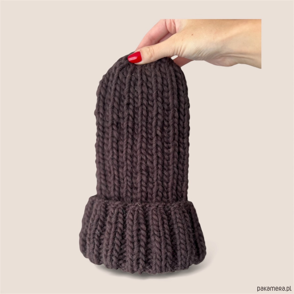 Czapka w kolorze czekoladowym, wykonana z naturalnej włóczki 100% wełna