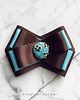 Broszka w kolorach czekoladowego brązu i błękitu.