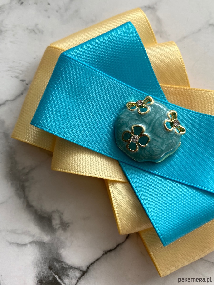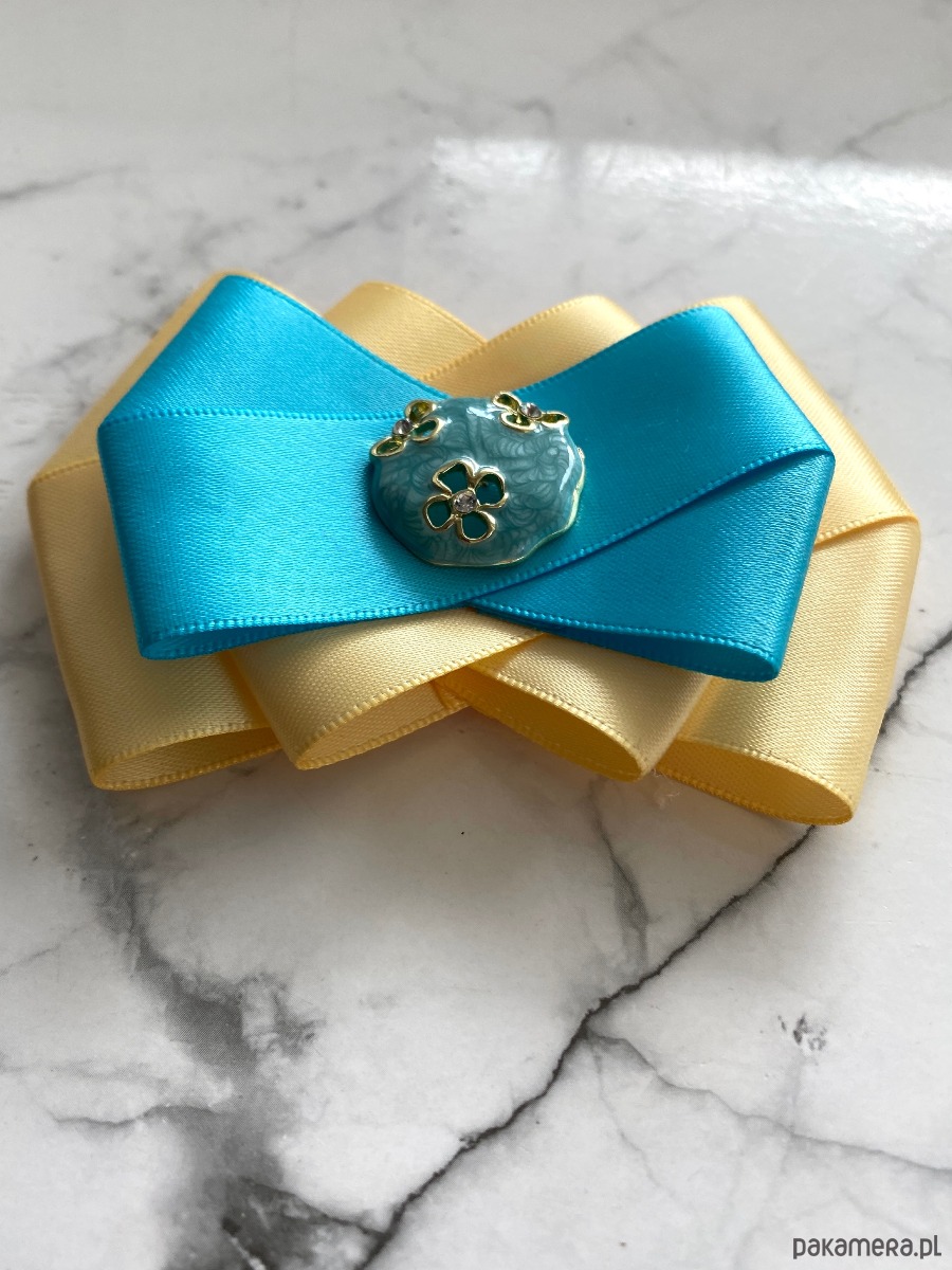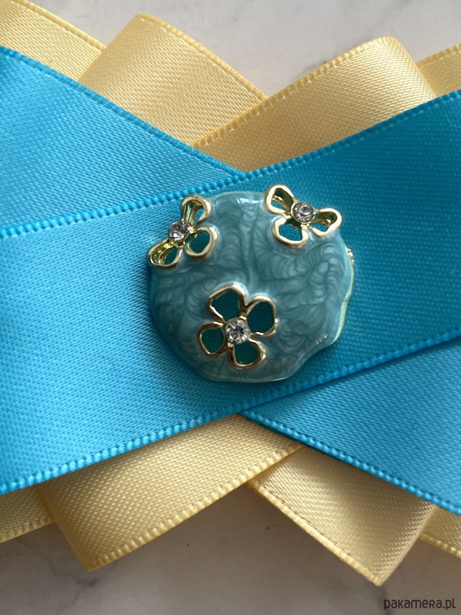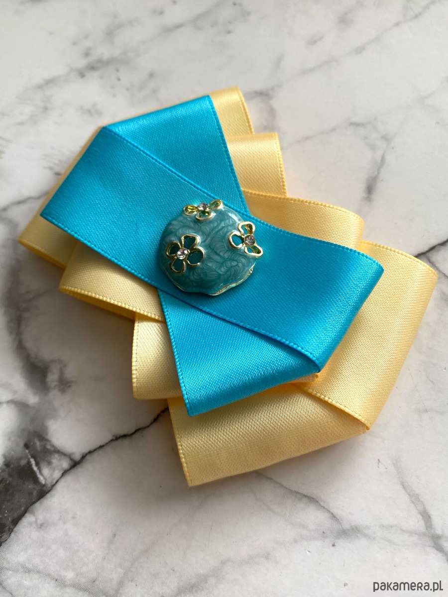 Broszka wykonana z wysokiej jakości taśm i dodatków.