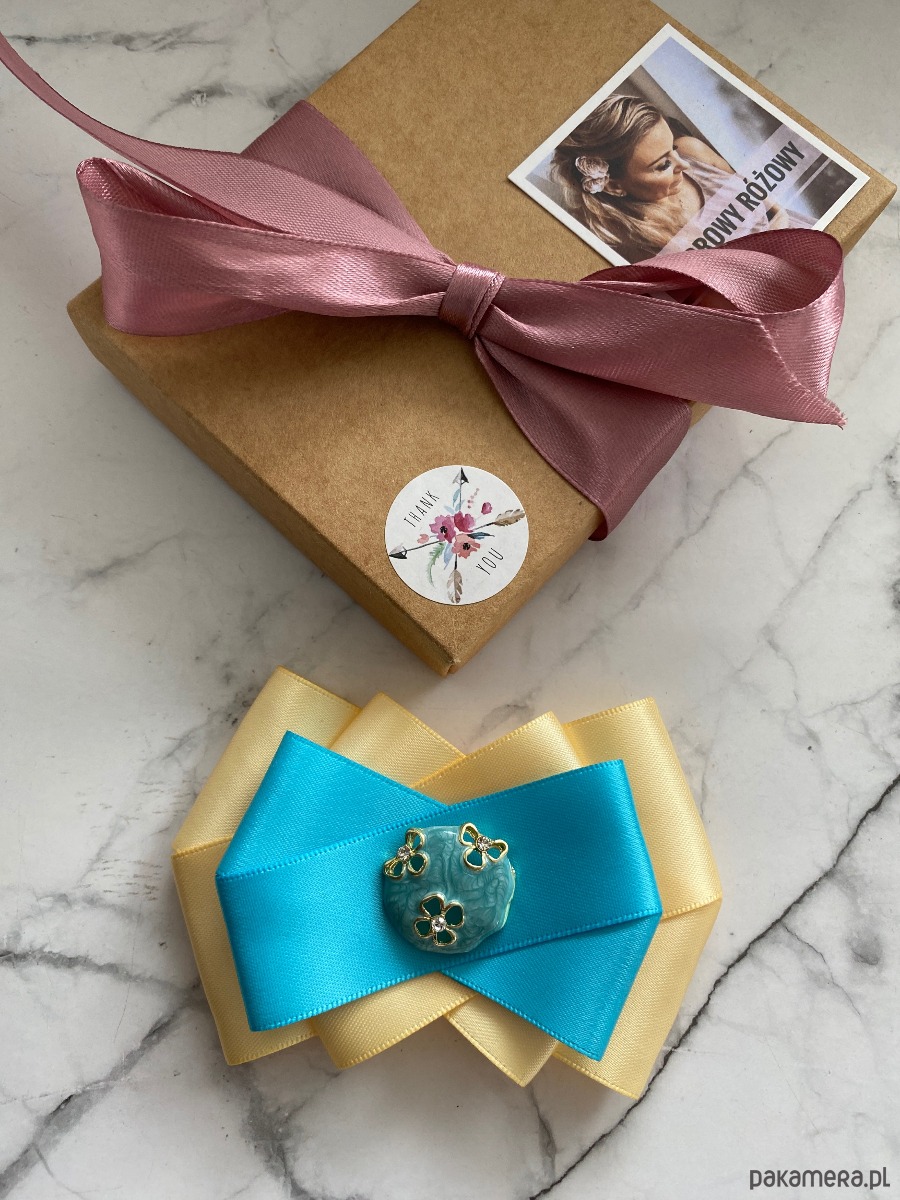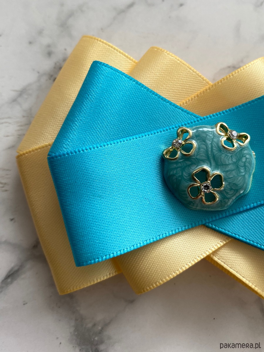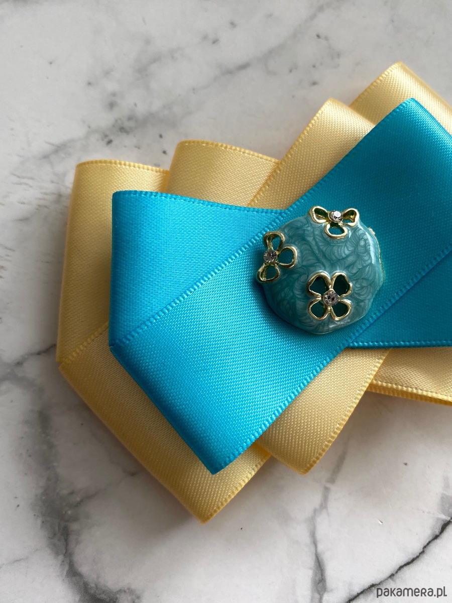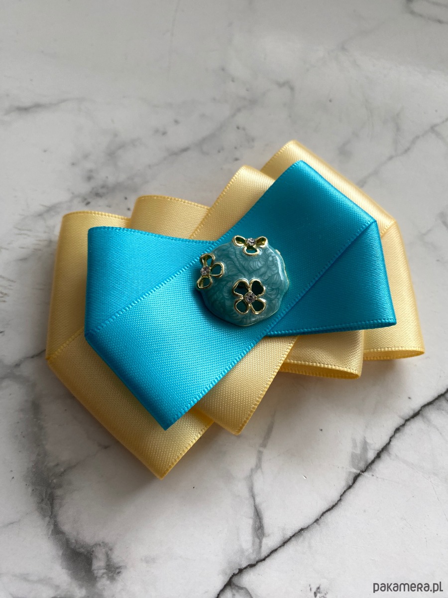 Broszka wykonana z wysokiej jakości taśm i dodatków.
