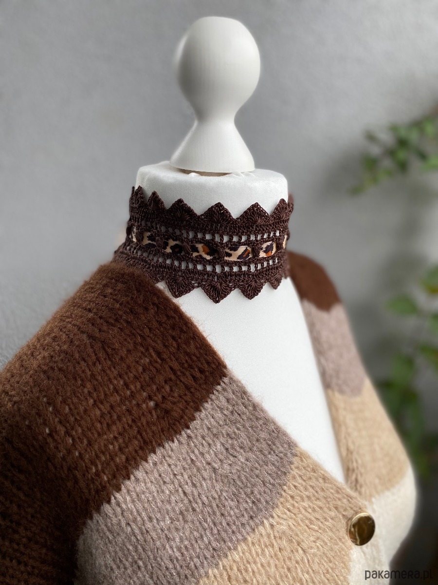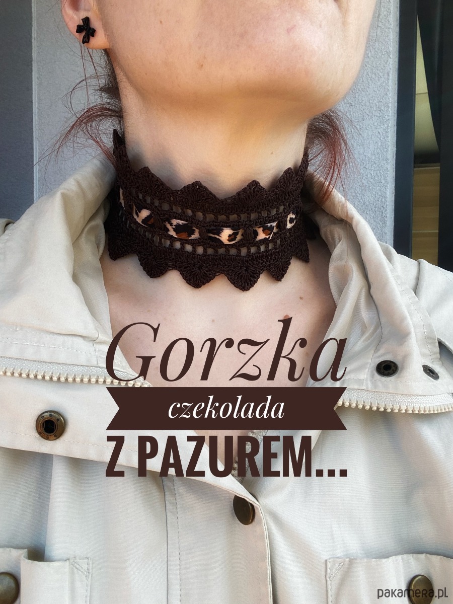 Czekoladowy brązowy koronkowy choker szydełkowy z pazurem