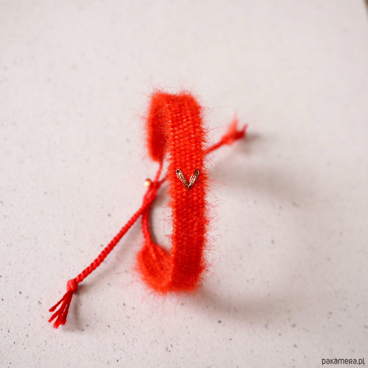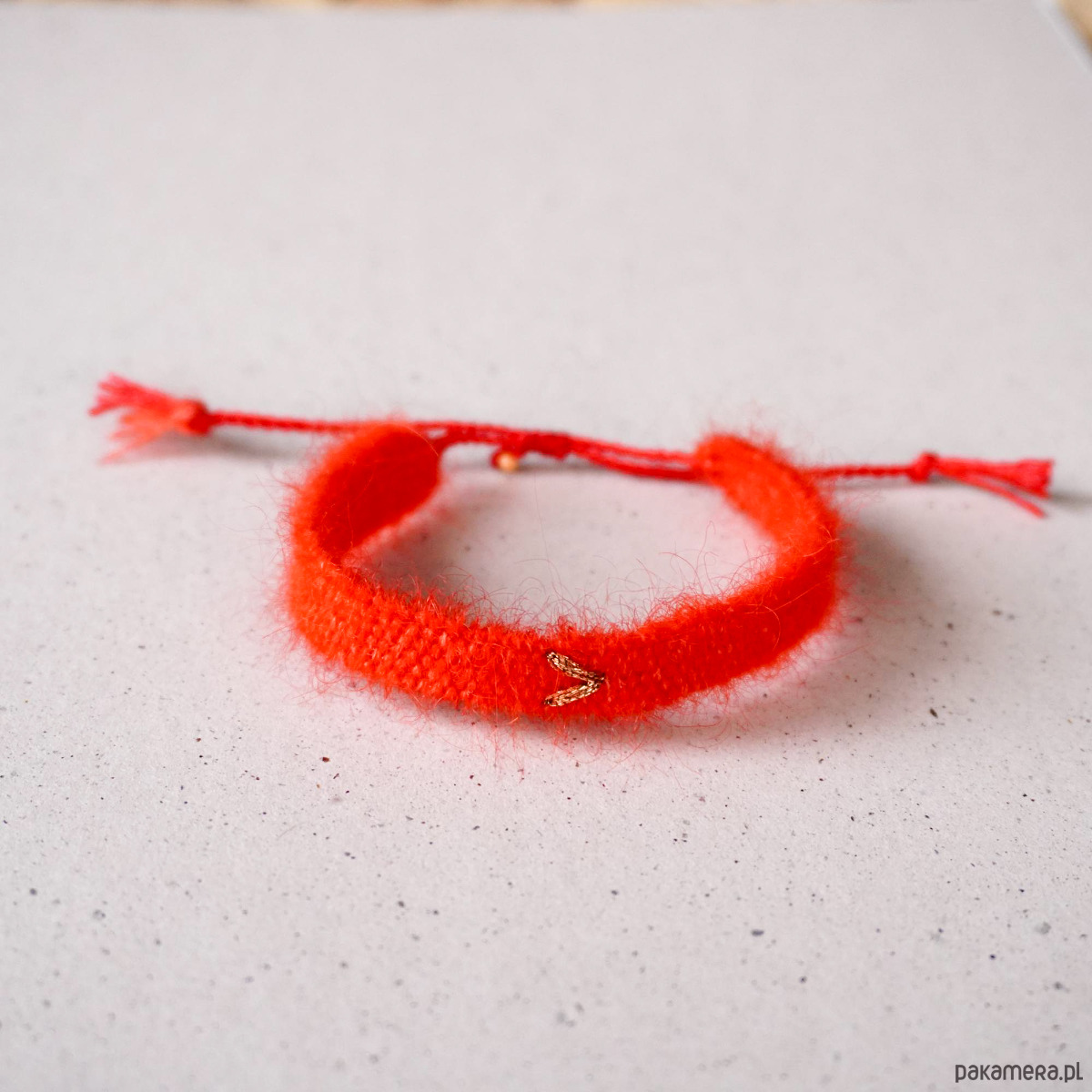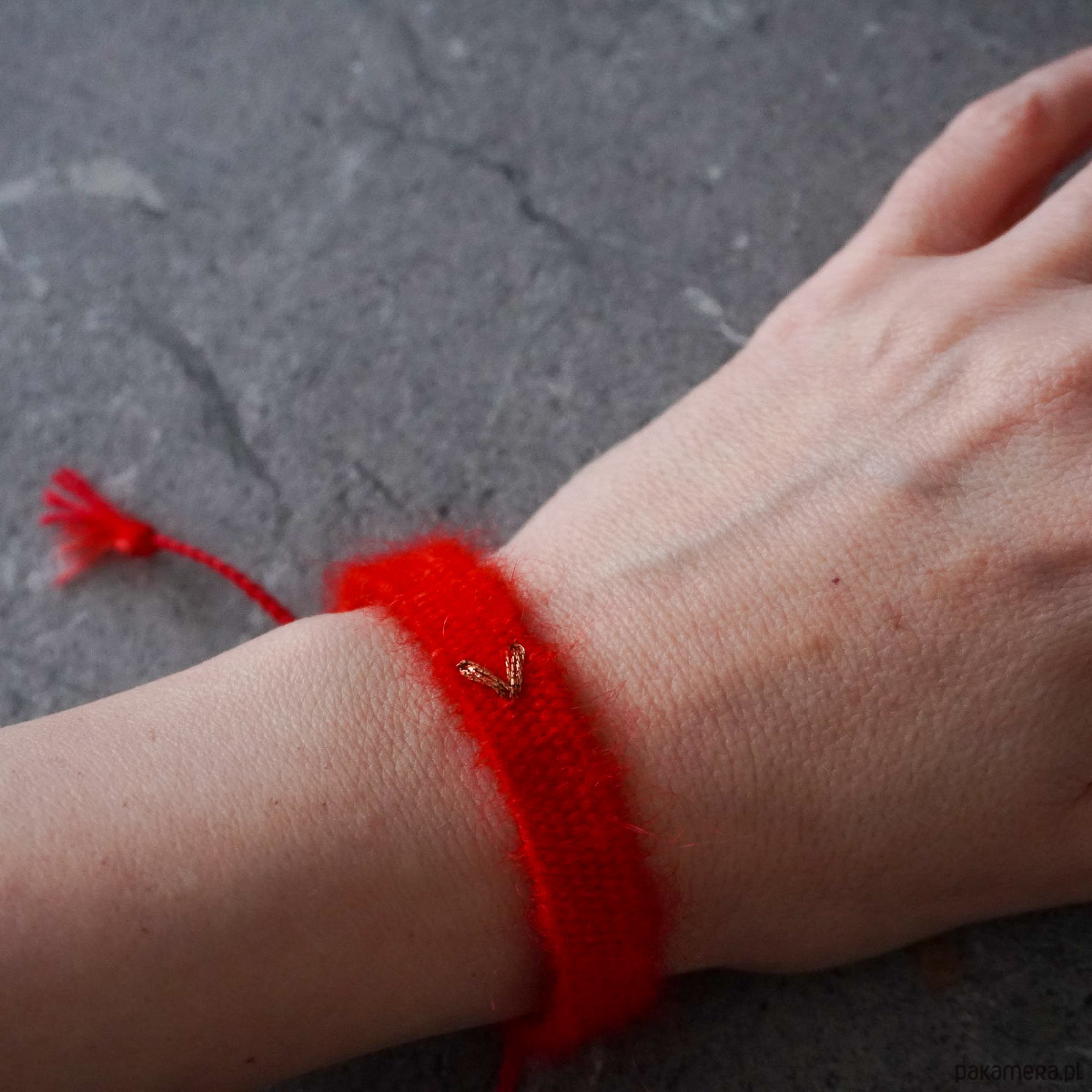Czerwona bransoletka handmade z haftowanym serduszkiem