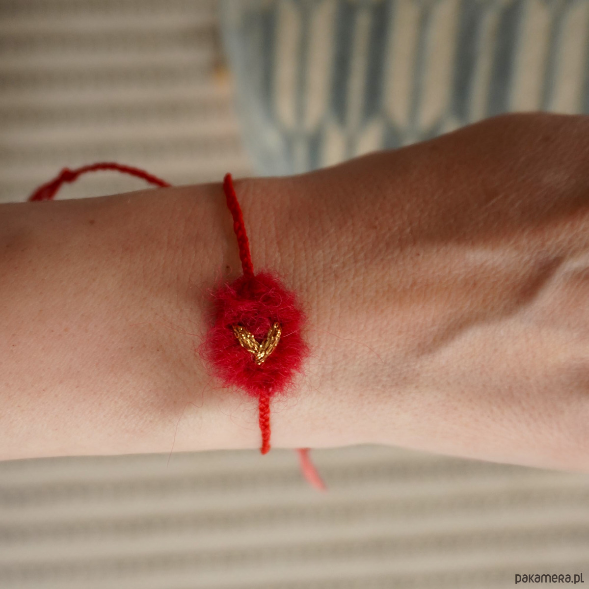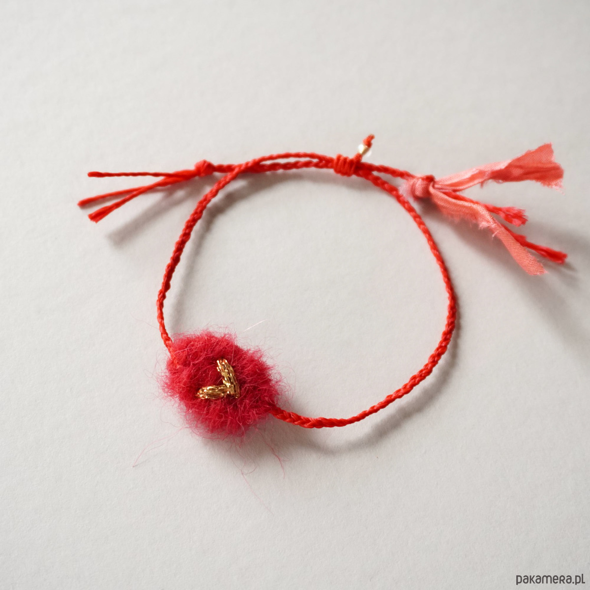 Czerwona tkana ręcznie bransoletka z haftowanym serduszkie...NA SZCZĘŚCIE dla Ciebie i Twoich bliskich ♡. Śliczna, puchata bransoletka na sznurku z tkanym ręcznie, ozdobnym elementem. Wymiary tej części tkanej to maksymalnie 1,5 cm × 1,5 cm. Zapięcie jest regulowane, makramowe, umożliwia wygodną regulację :). Wzór jest unikatowy, stworzony przeze mnie. Bransoletkę wysyłam estetycznie zapakowaną :). Zapraszam serdecznie :)