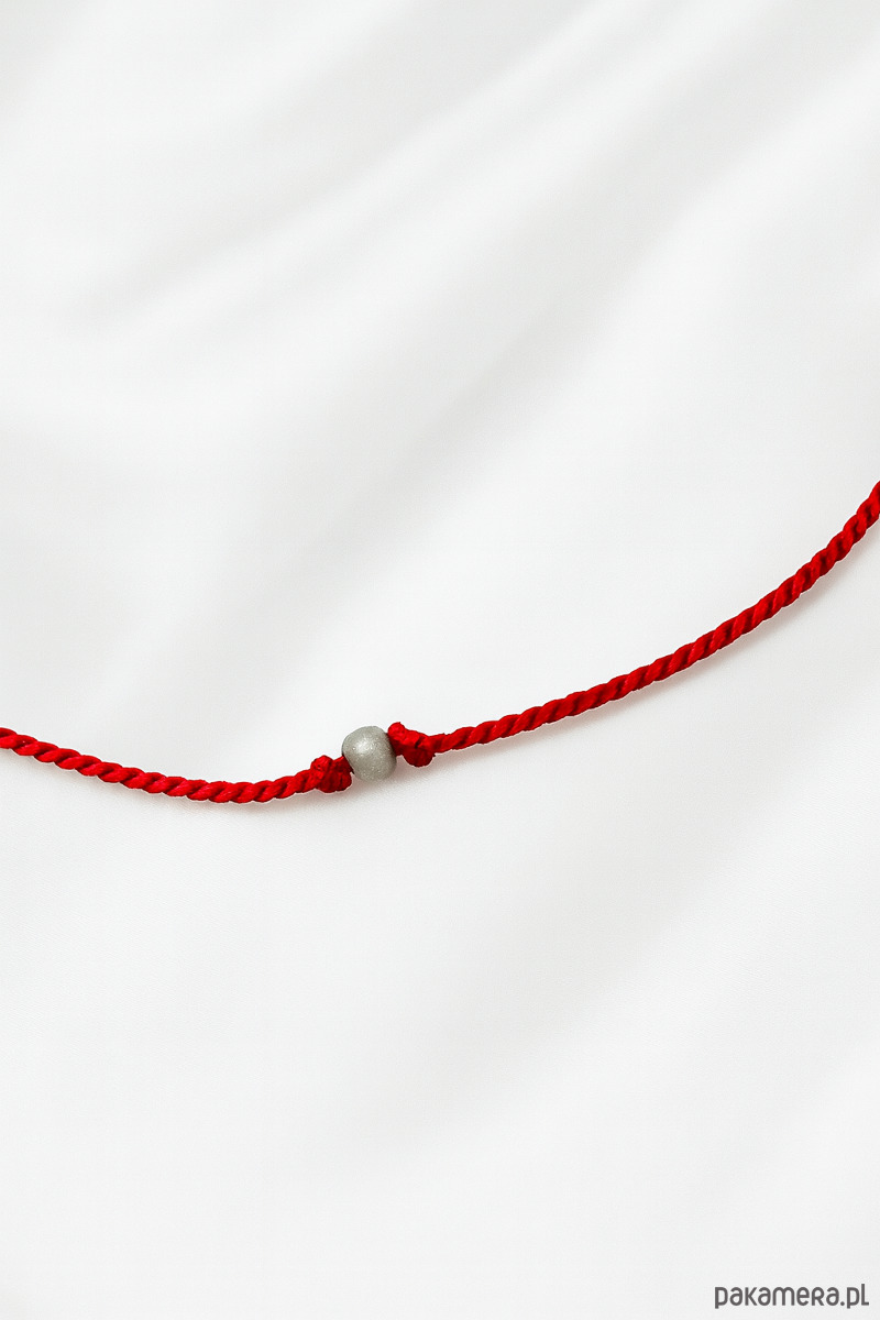 Delikatna, minimalistyczna bransoletka wykonana z naturalnego jedwabnego sznurka w klasycznym, symbolicznym czerwonym kolorze. Jej subtelną ozdobą jest mała kuleczka ze srebra próby 925, która dodaje całości elegancji i ponadczasowego charakteru.