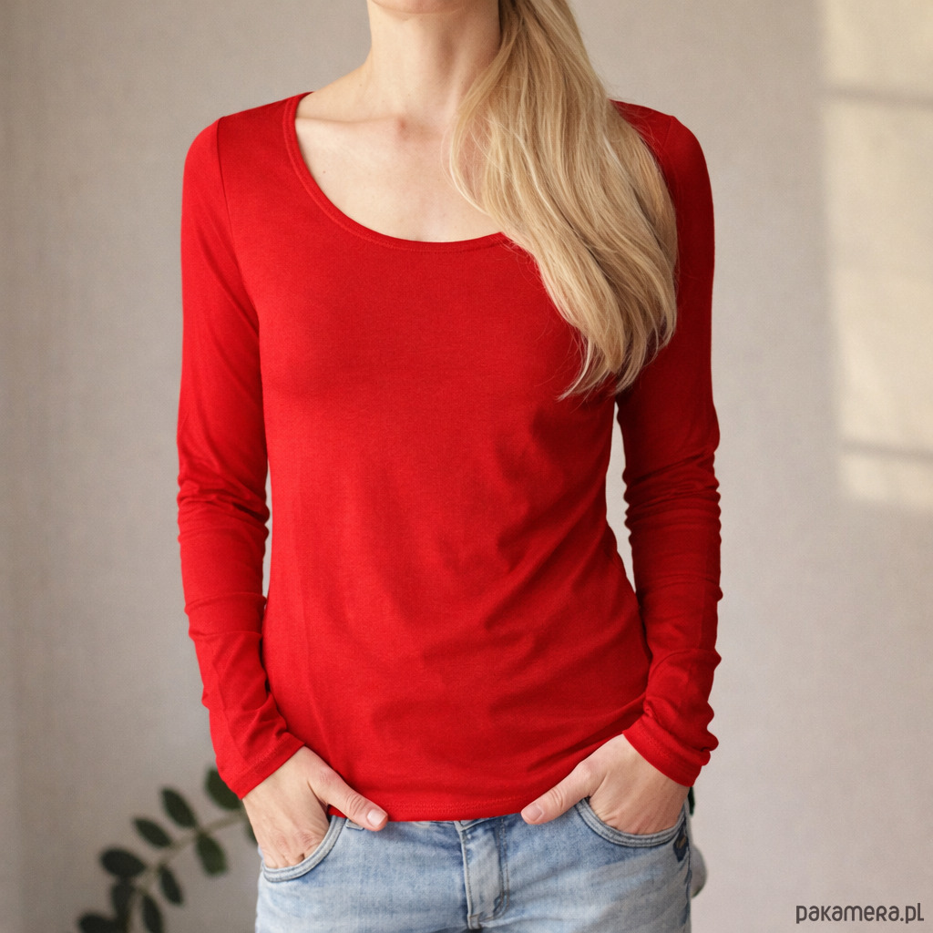 Czerwona bluzka uszyta z miękkiej, elastycznej bawełny.