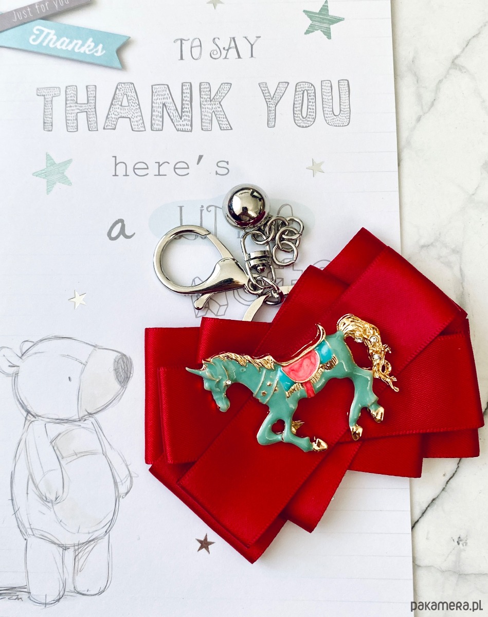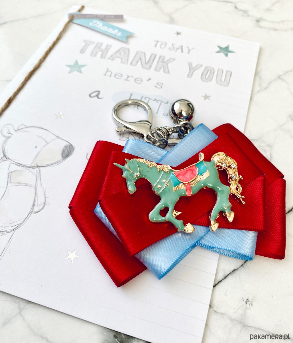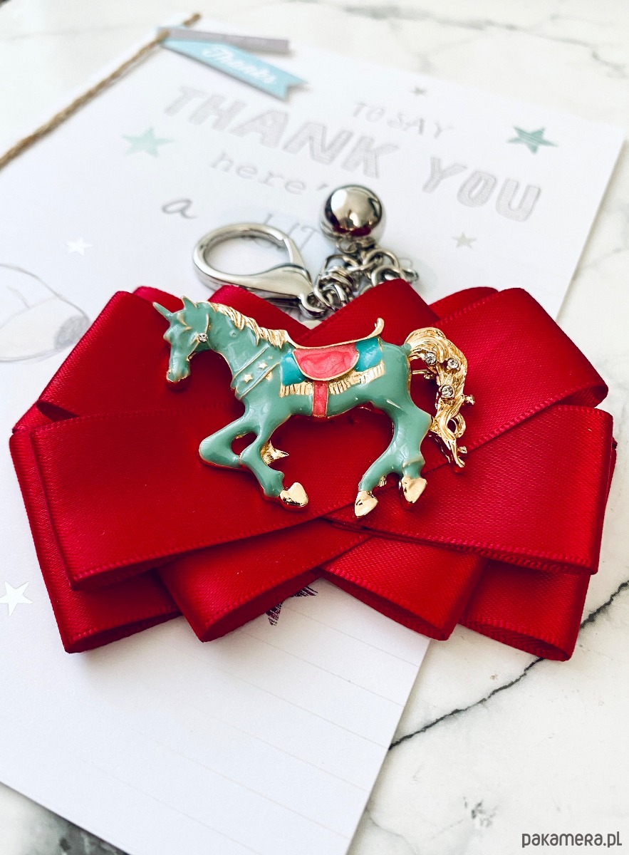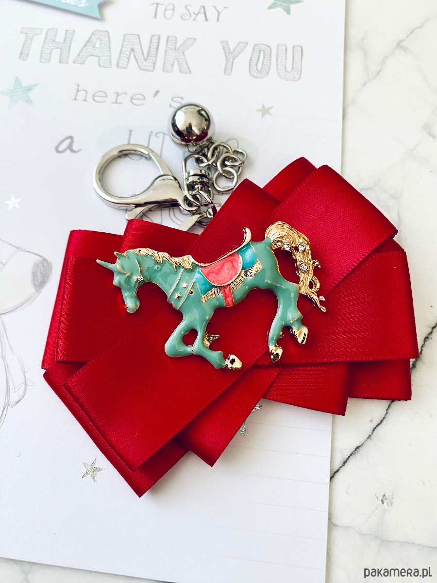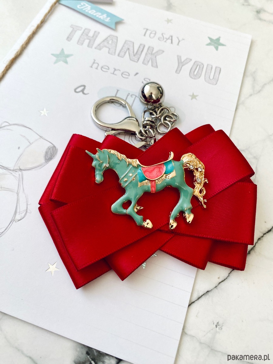 Czerwona kokardka/ brelok do wózka, nosidełka czy łóżeczka.