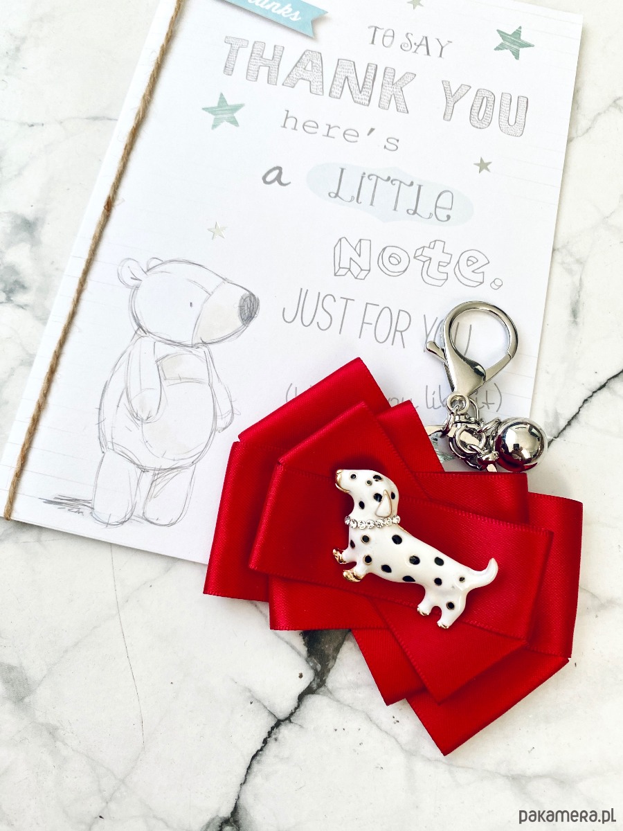 Czerwona kokardka/ brelok do wózka, nosidełka czy łóżeczka.