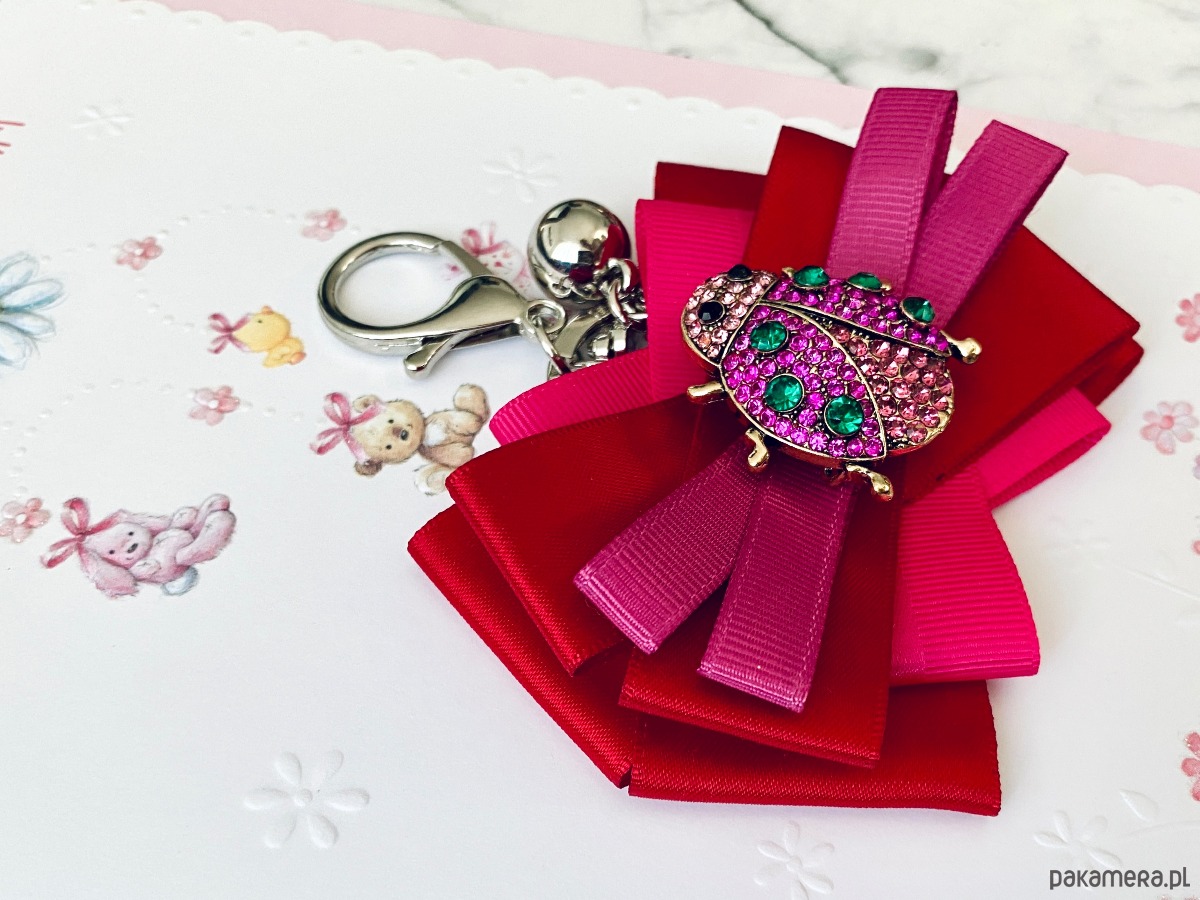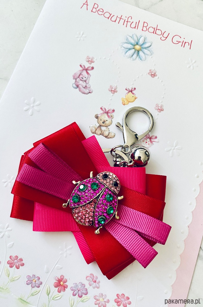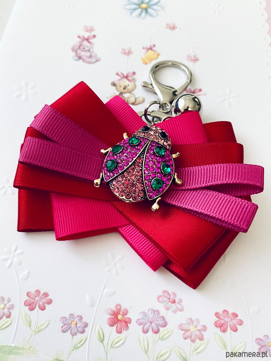 Piękna ozdoba biżuteryjna w kolorze fuksji Biedronka wysadzana kryształkami.