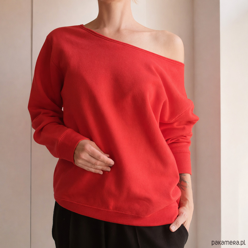Mięciutka, maksymalnie ciepła i puchata czerwona bluza oversize bez nadruku.
