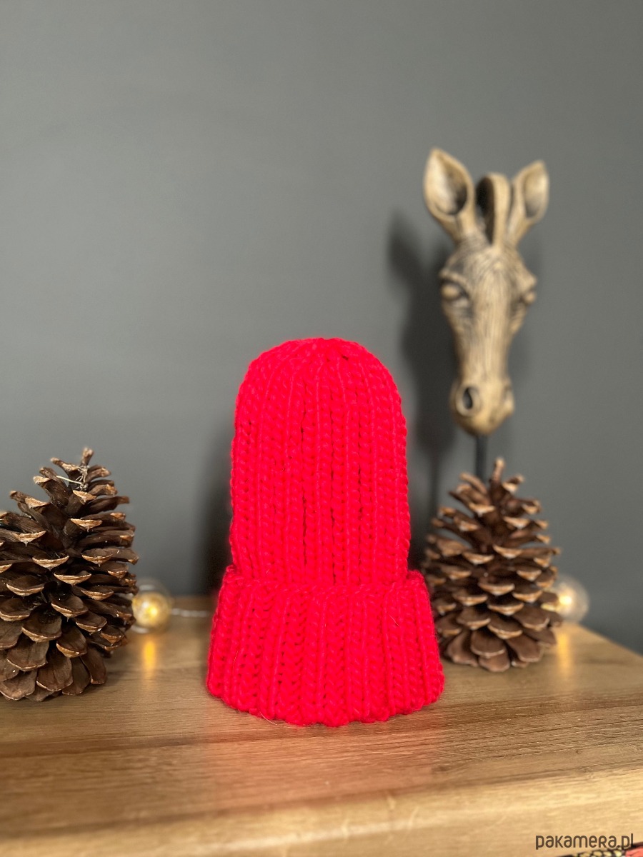 Czapka w kolorze czerownym, wykonana z naturalnej włóczki 100% wełna