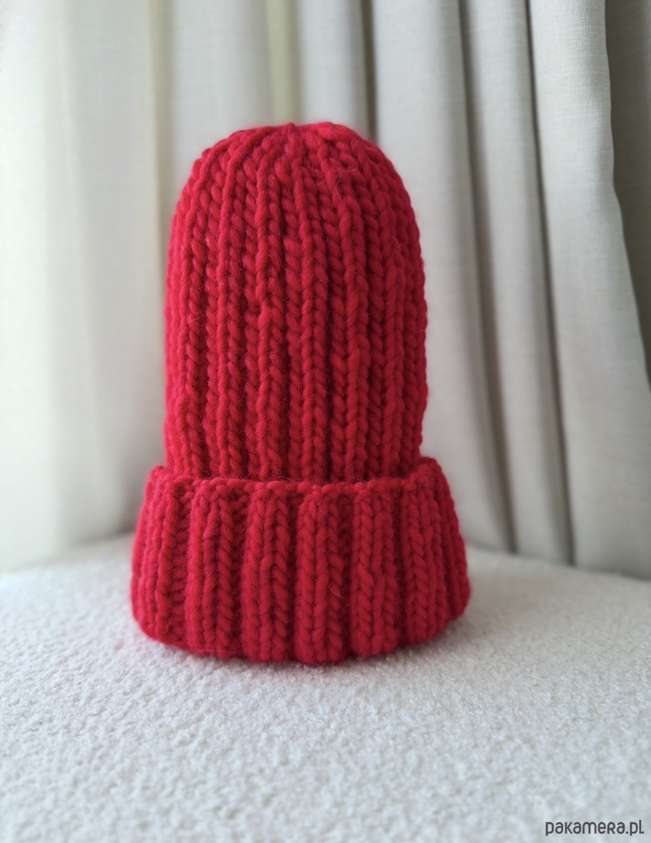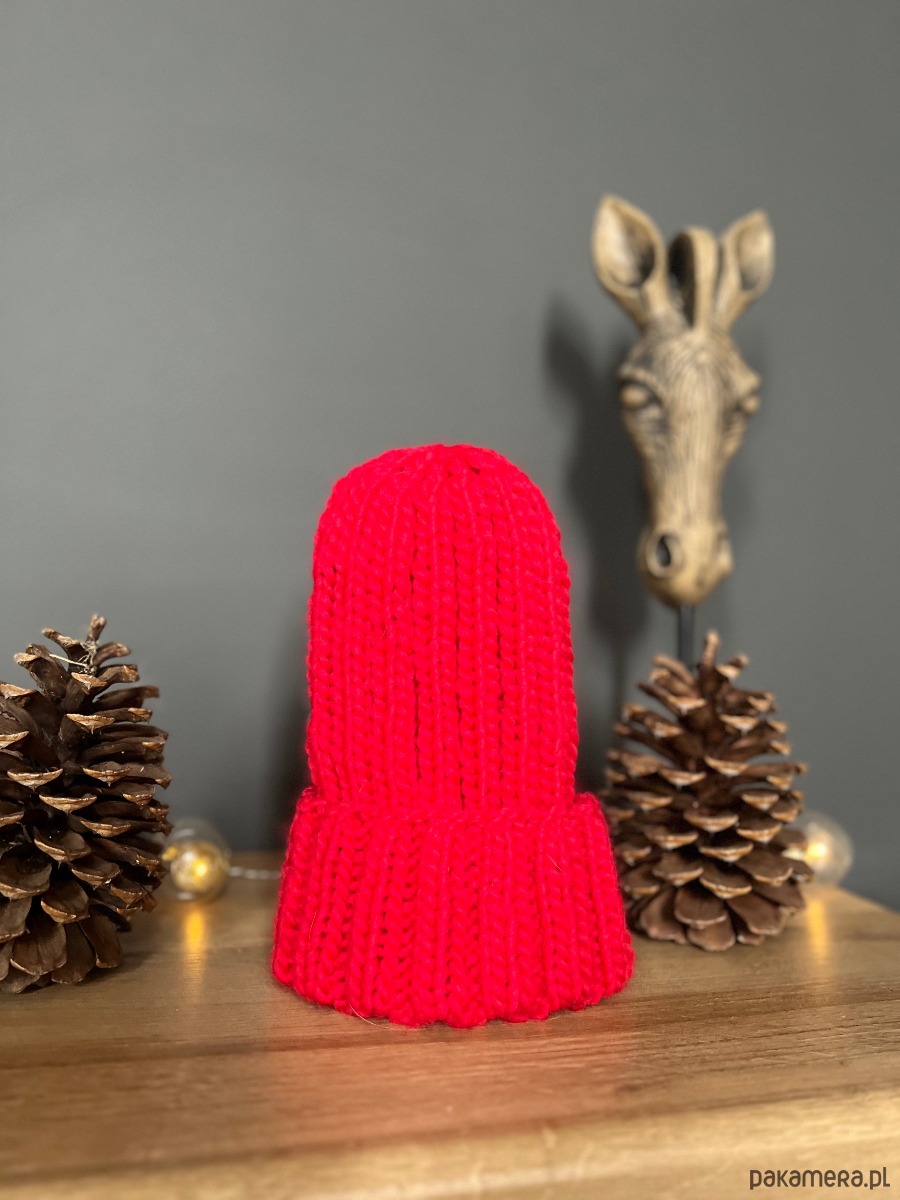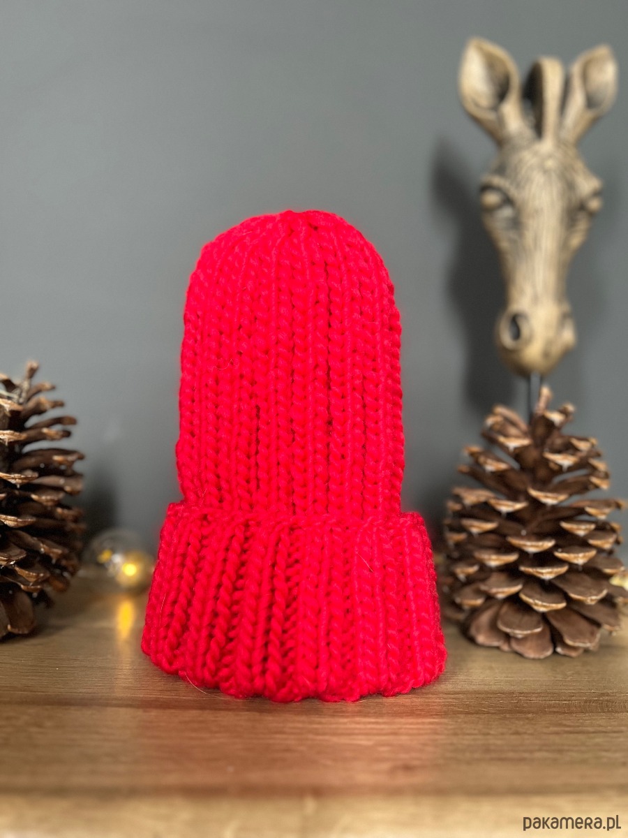 Czapka w kolorze czerownym, wykonana z naturalnej włóczki 100% wełna