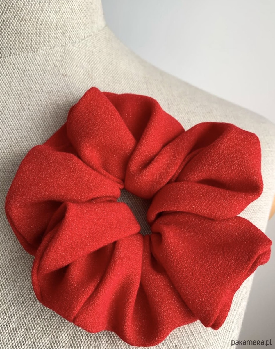 Scrunchie Juicy Red to gumka do włosów w soczystym odcieniu czerwieni, uszyta z materiału o delikatnie mieniących się drobinkach, które przy ruchu światła tworzą subtelny, elegancki blask. To idealny dodatek, gdy chcesz dodać stylizacji charakteru.