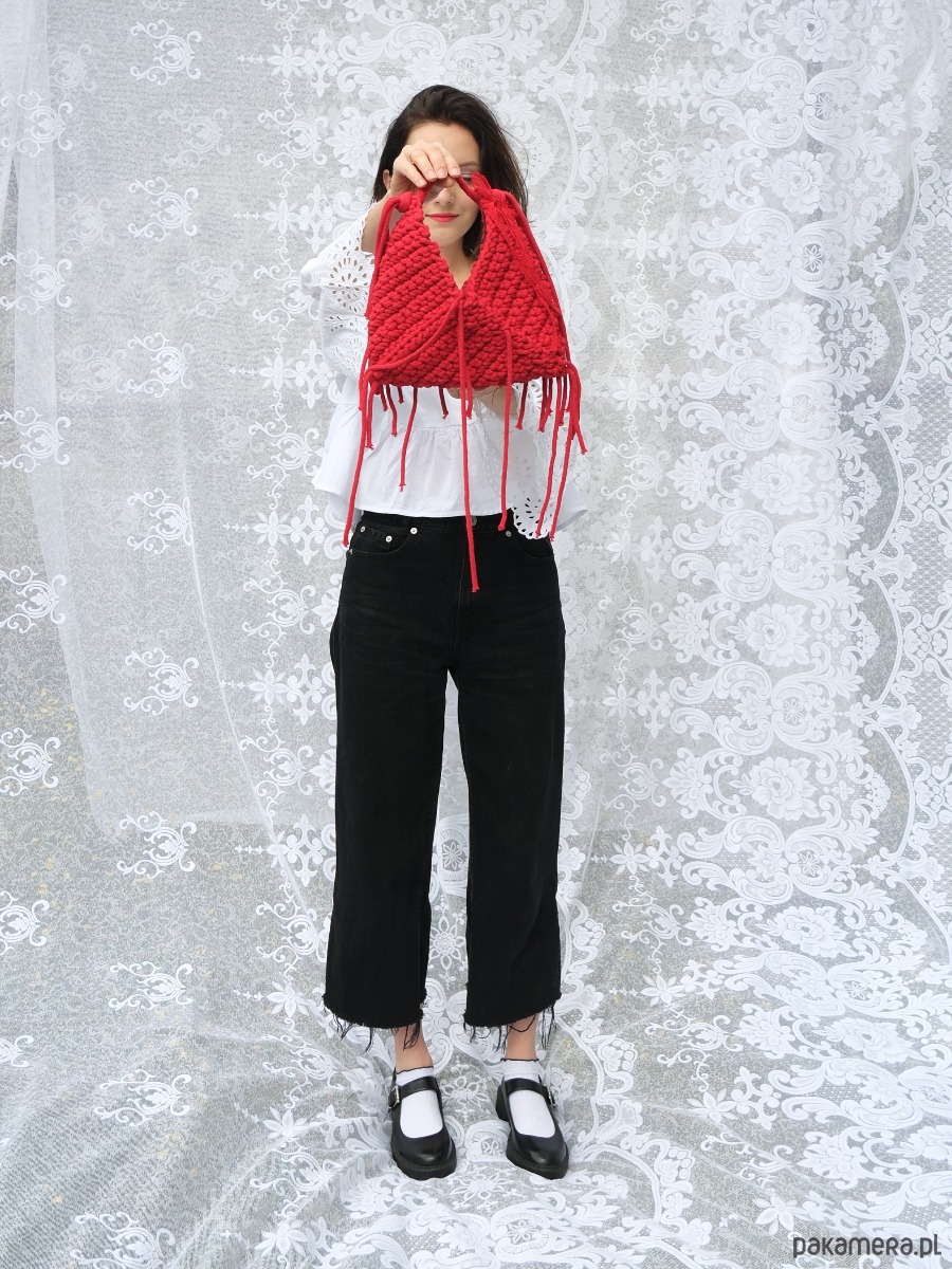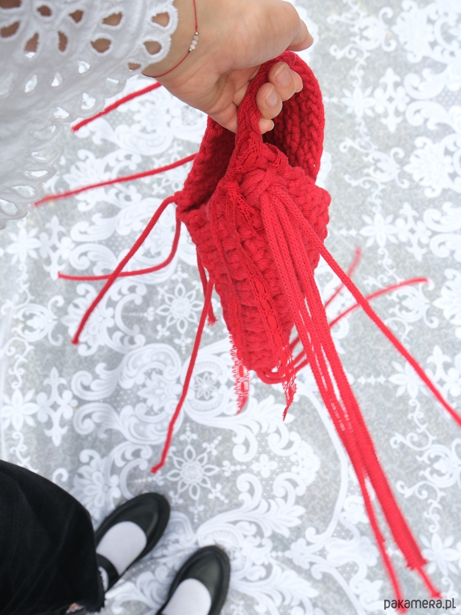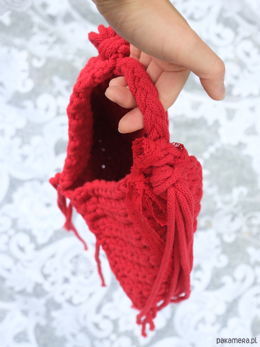 Czerwona Torebka ze Sznurka Bawełnianego z Recyklingu z Frędzlami