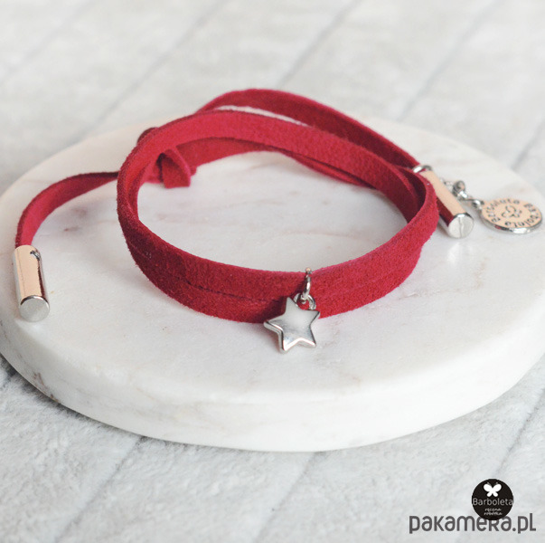 Czerwona zamszowa bransoletka z gwiazdką