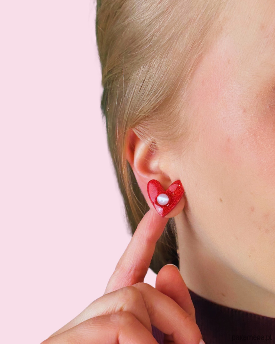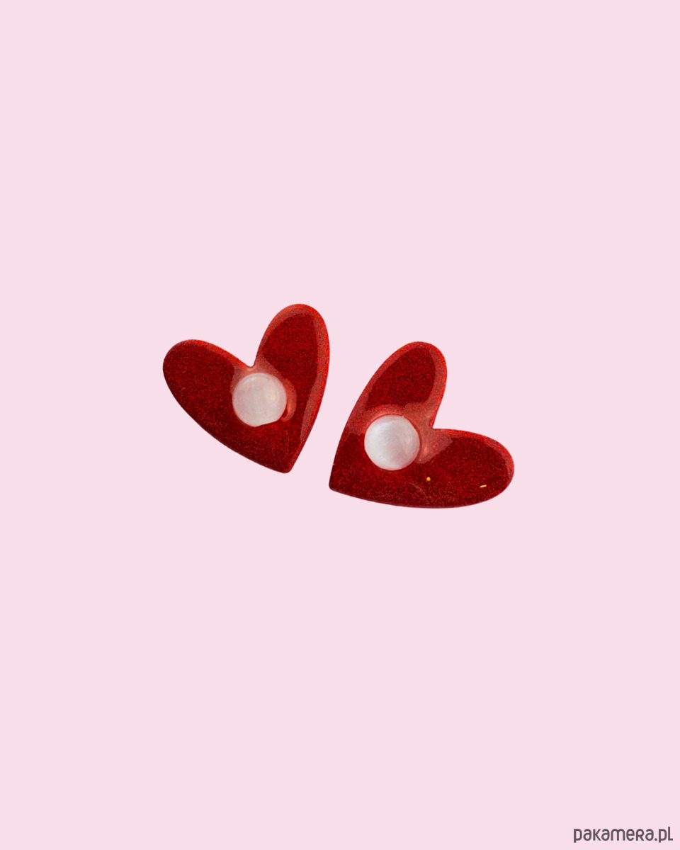 Czerwone brokatowe kolczyki SERCA mini z oczkiem