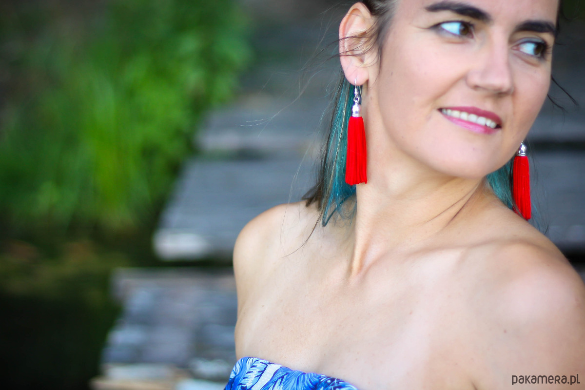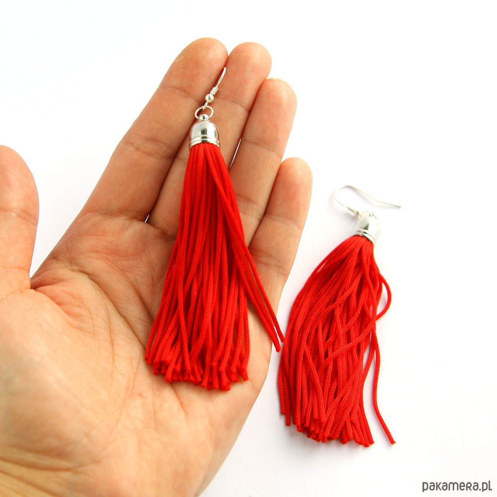 Efektowne kolczyki z chwostami w kolorze intensywnej czerwieni - idealne do karnawałowej lub letniej stylizacji!