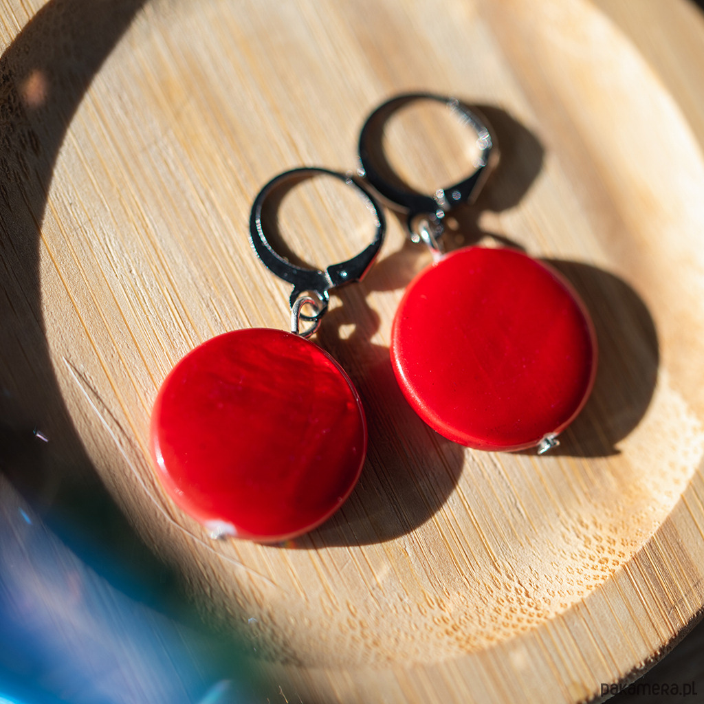 Czerwone kolczyki z masy perłowej