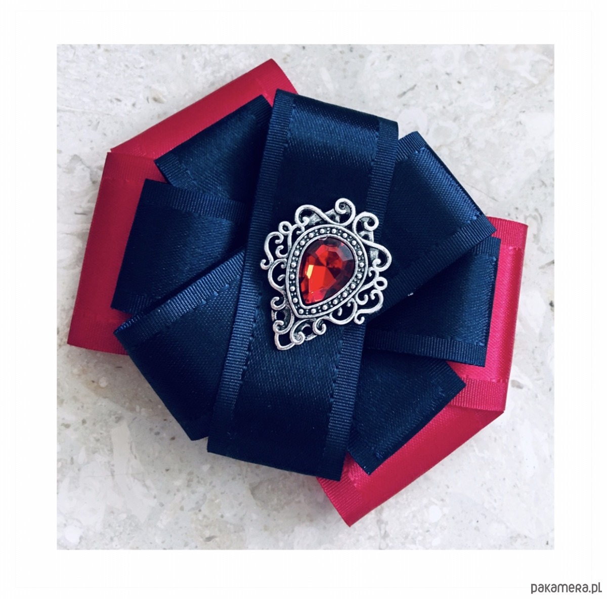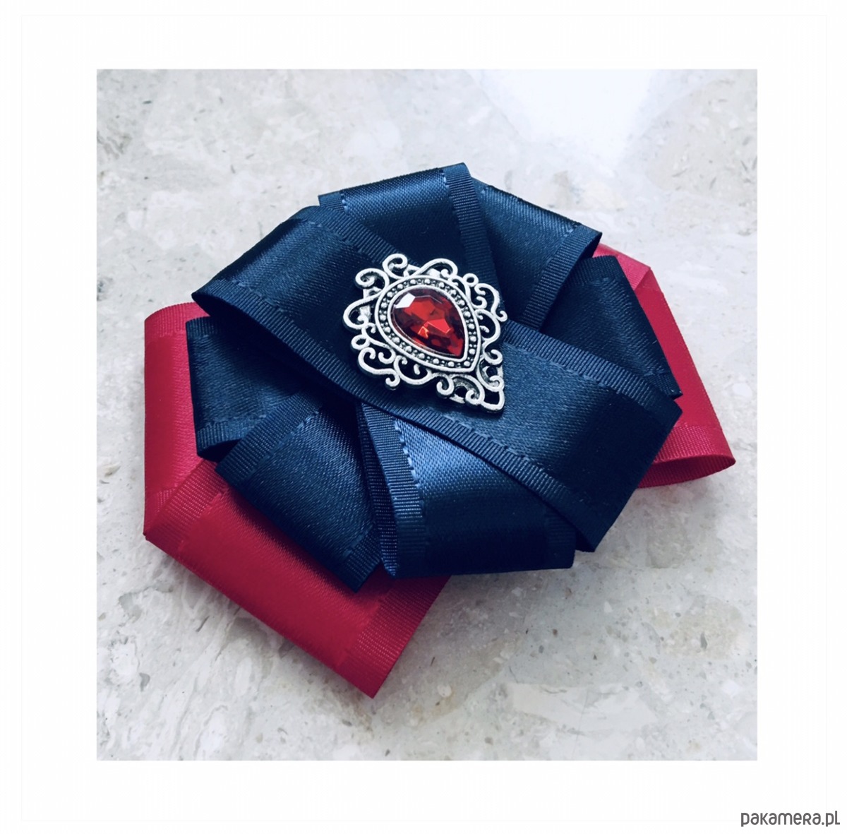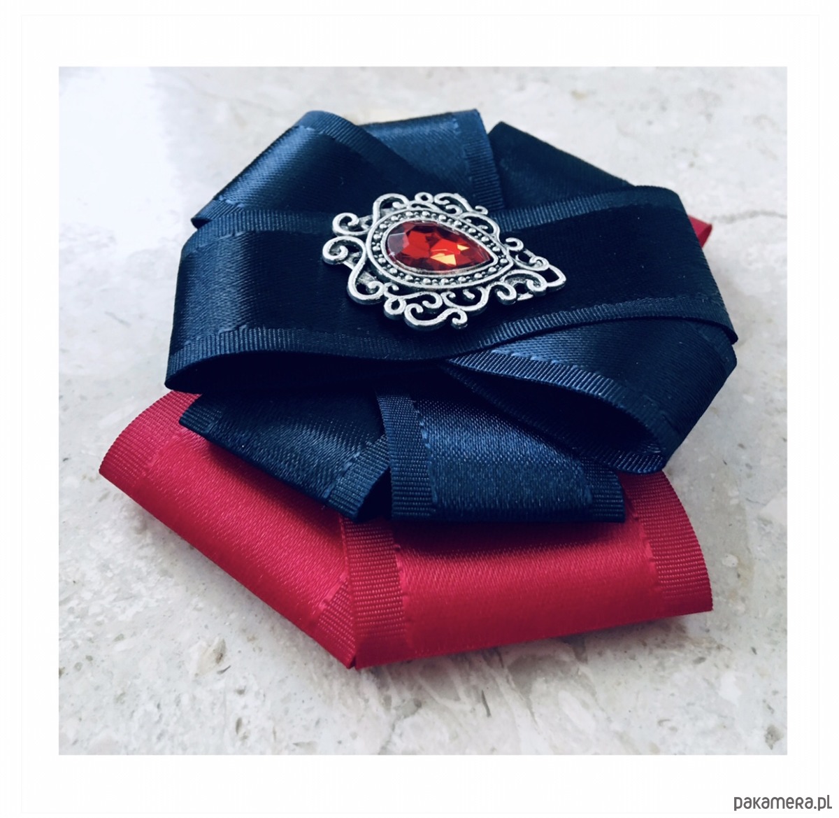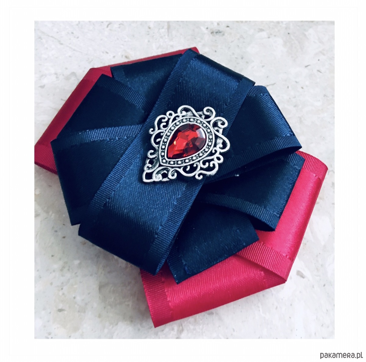 Czerwono - granatowa Brosza z delikatną ozdobą NEW