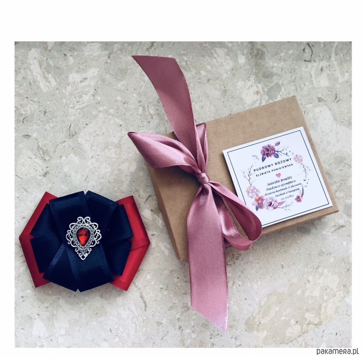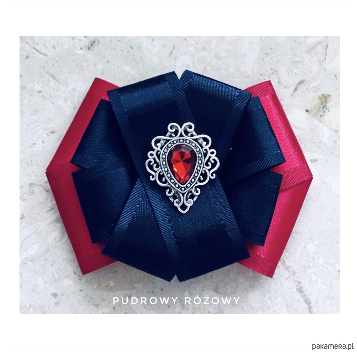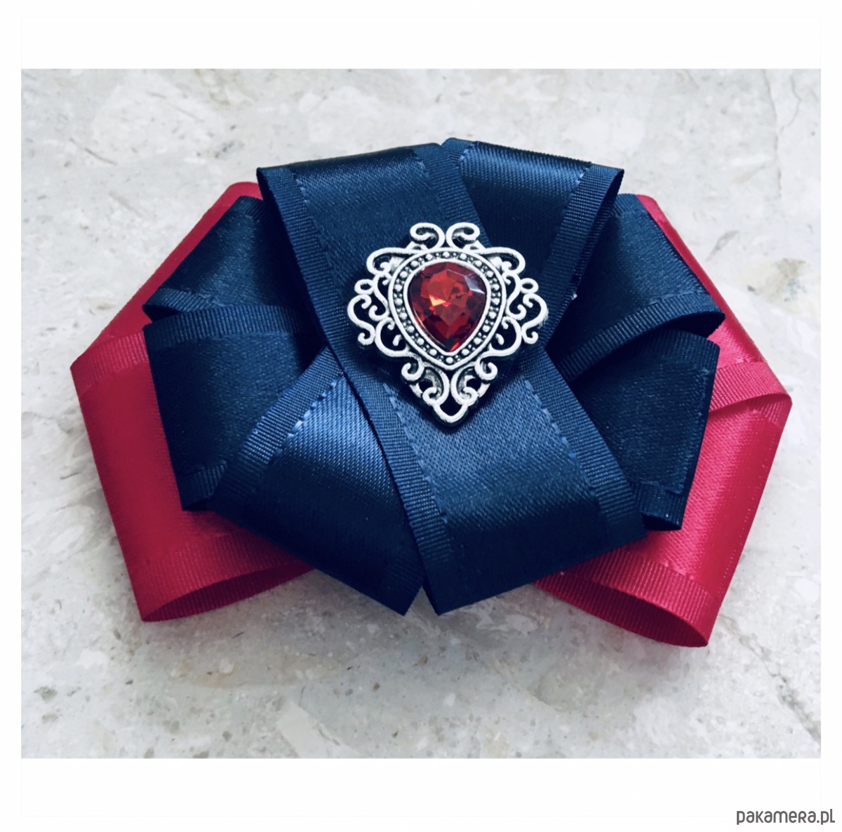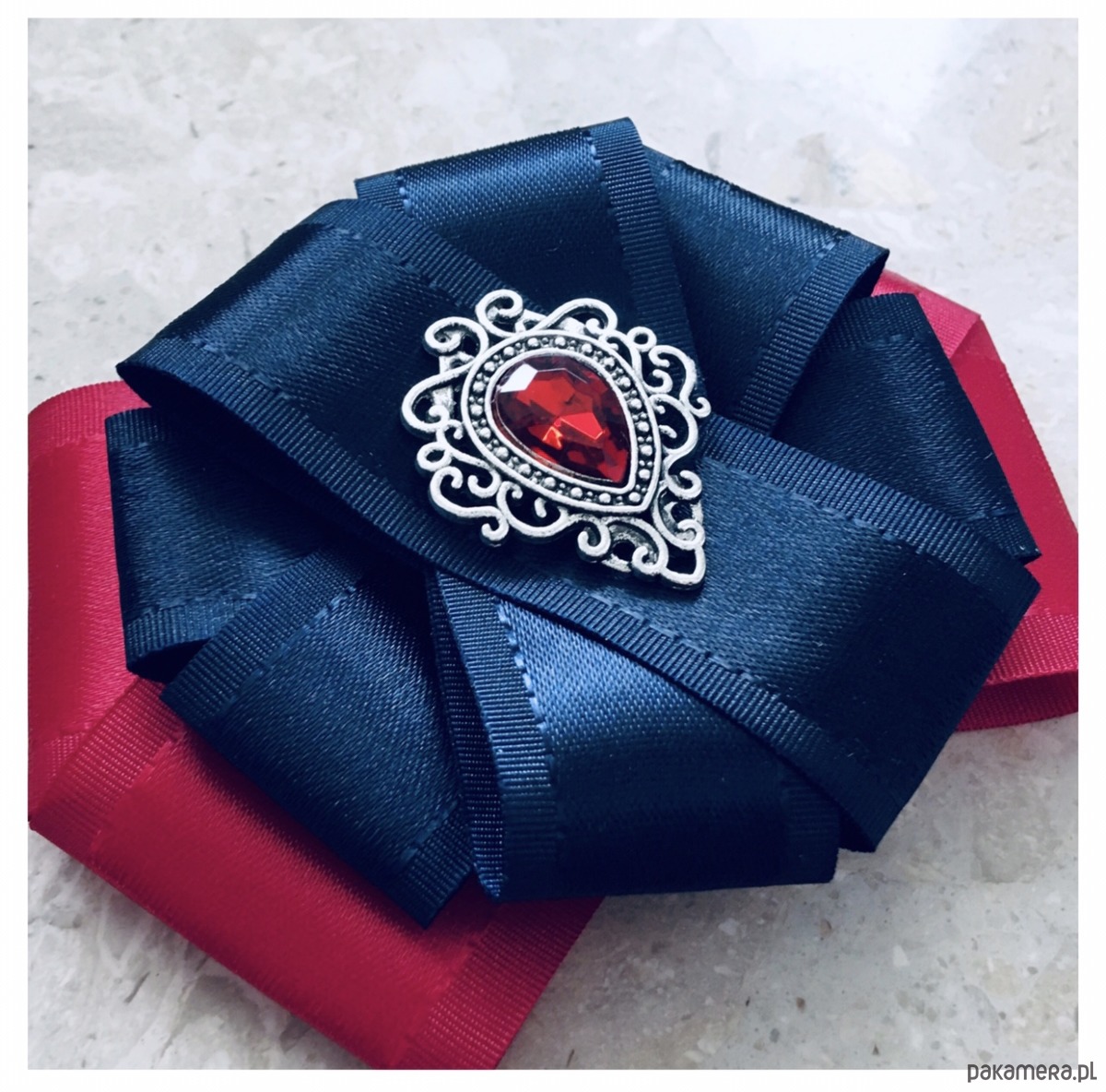 Czerwono - granatowa Brosza z delikatną ozdobą NEW
