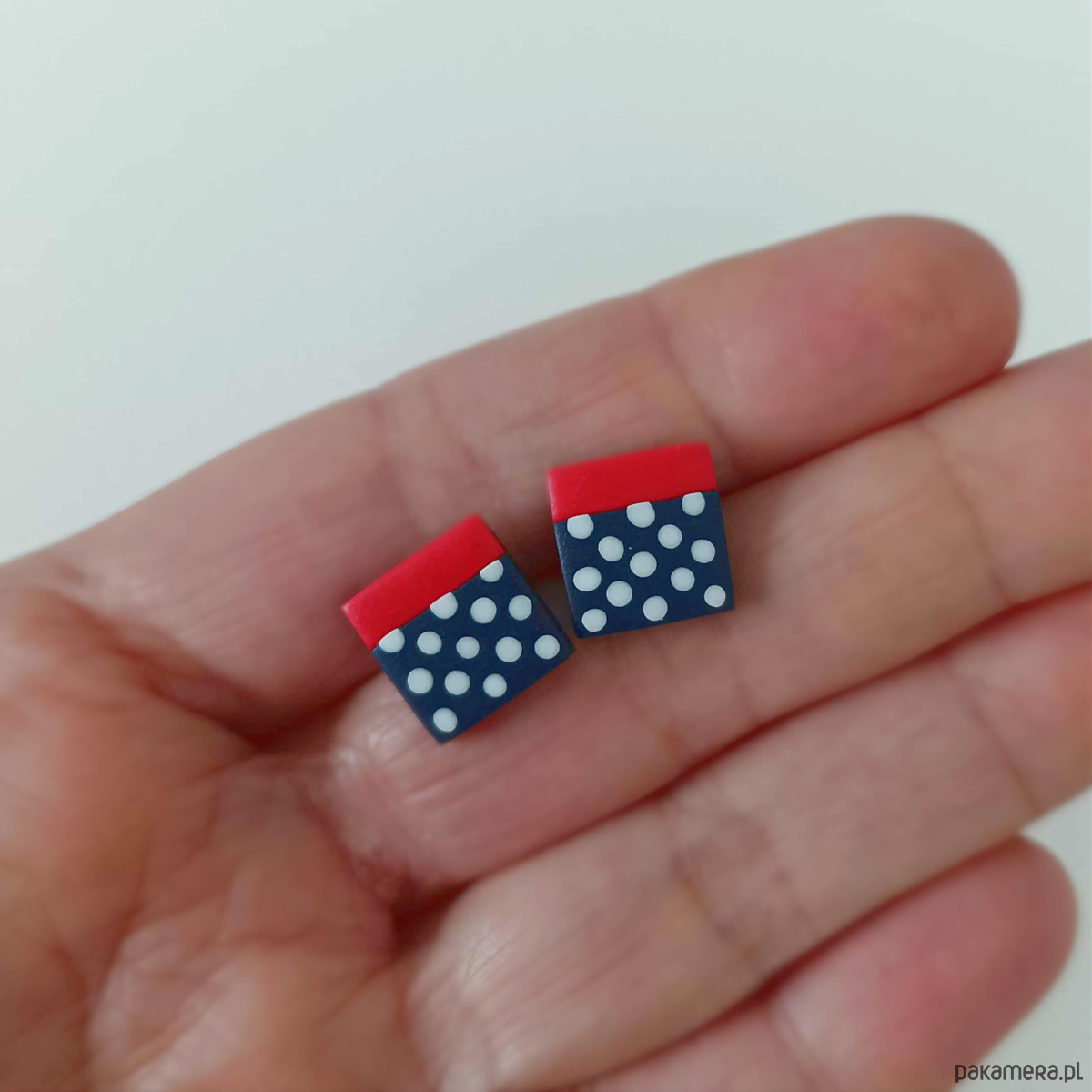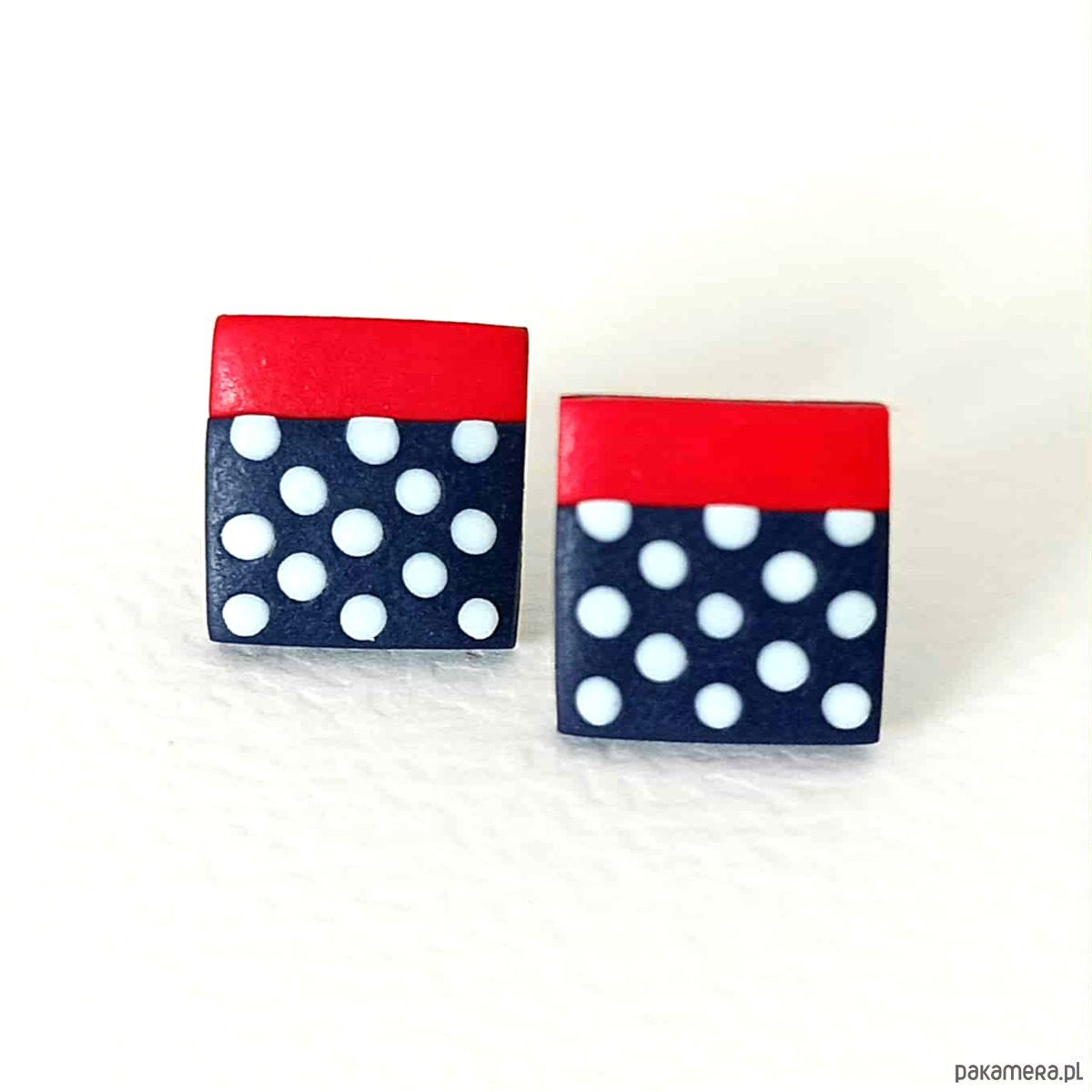 Urocze i pełne stylu kolczyki w grochy w kolorach czerwieni, granatu i bieli