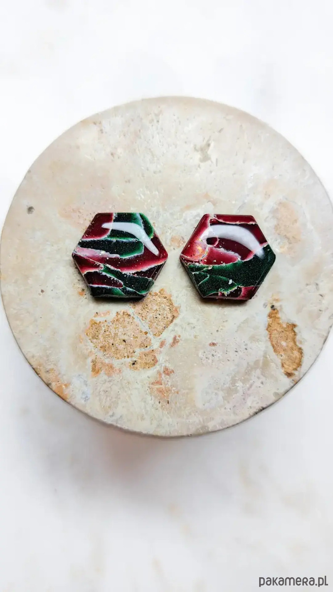 Czerwono zielone sześciokątne kolczyki sztyfty