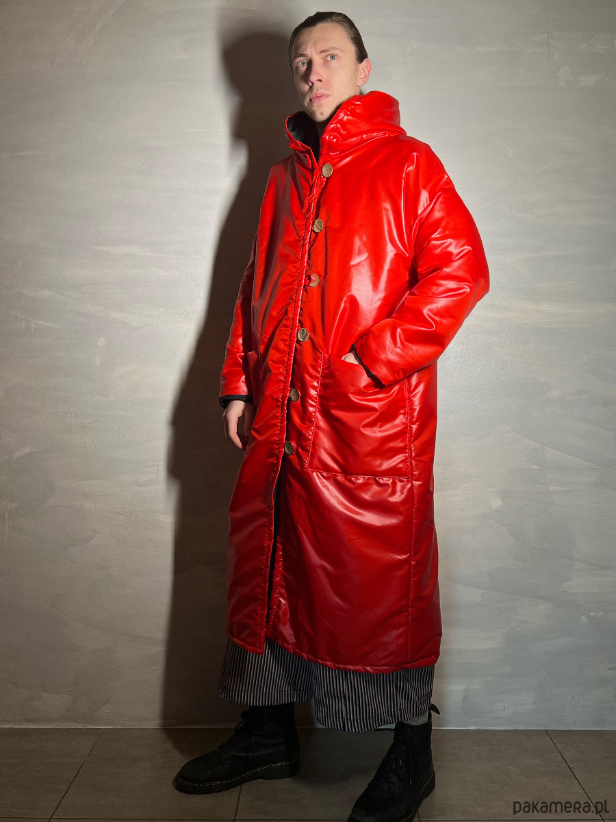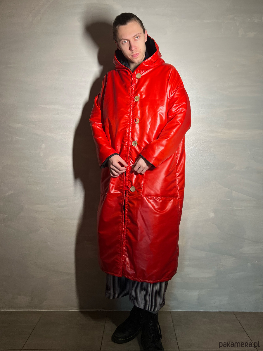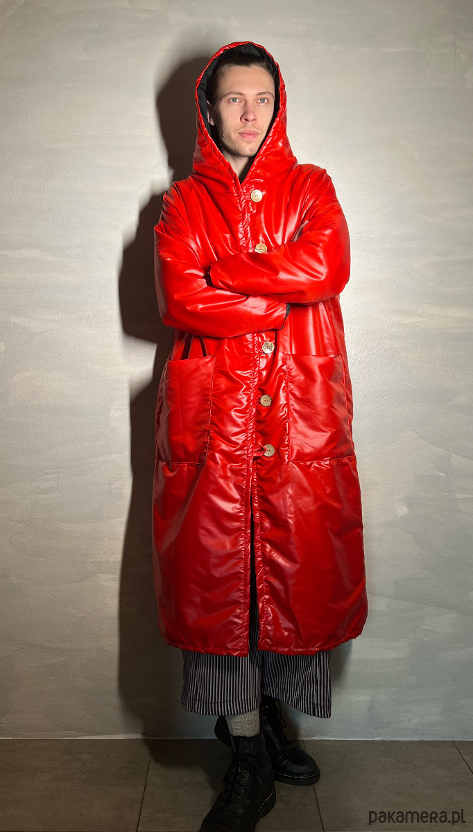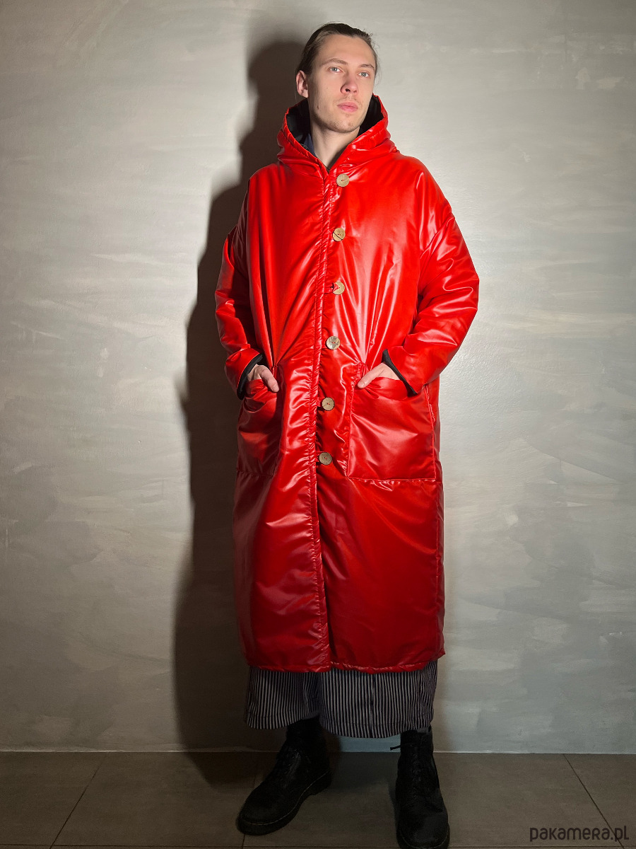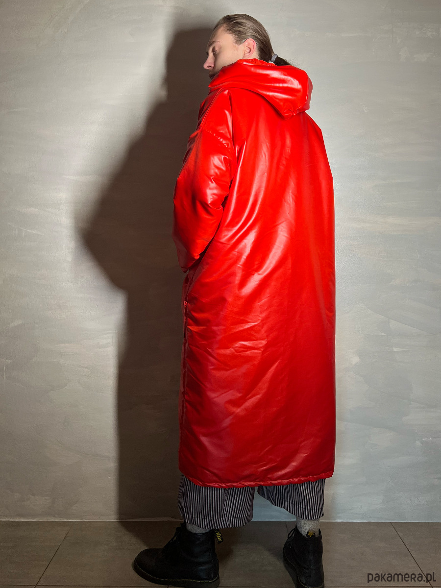 Długi płaszcz impregnowany na podszewce z kapturem ocieplany