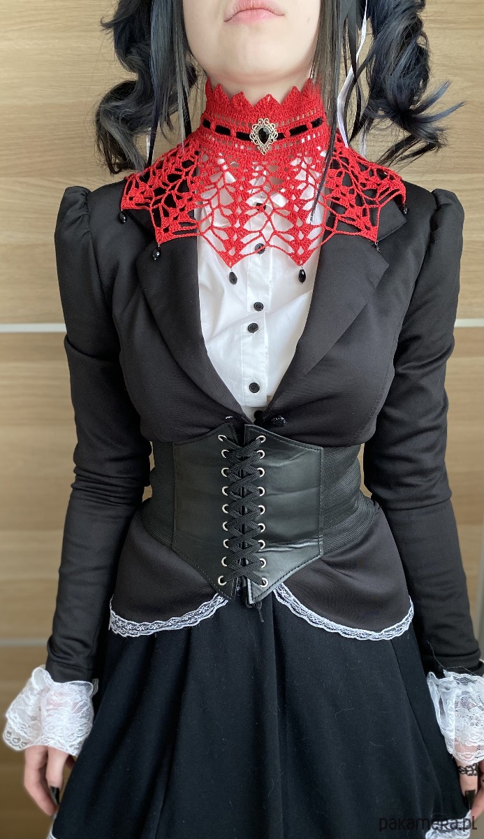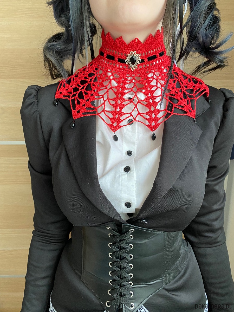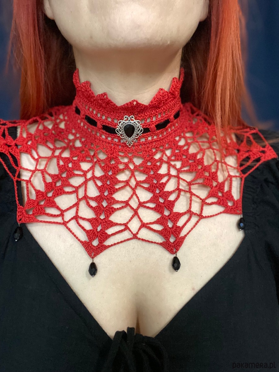Czerwony gotycki naszyjnik koronkowy, vintage wiktoriańska kolia