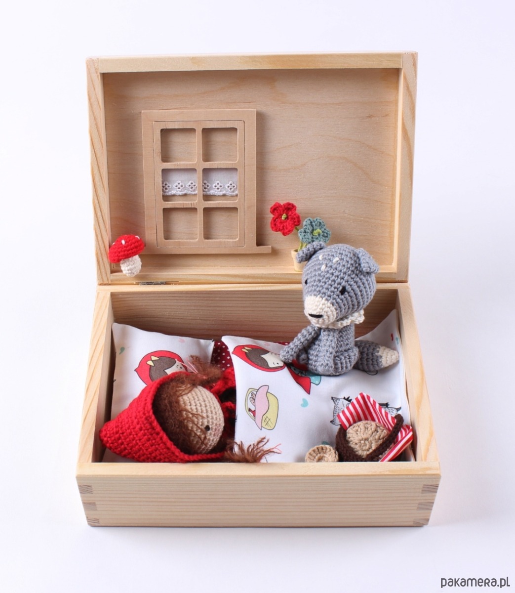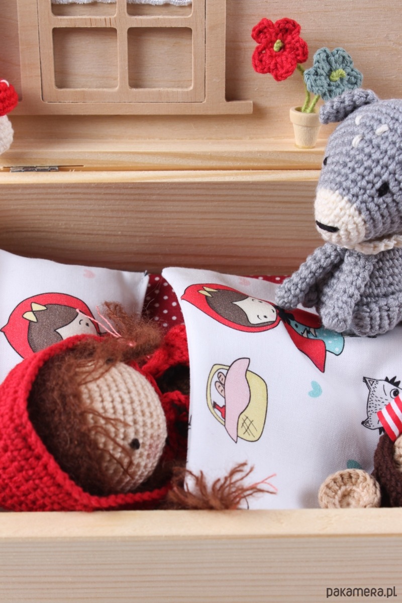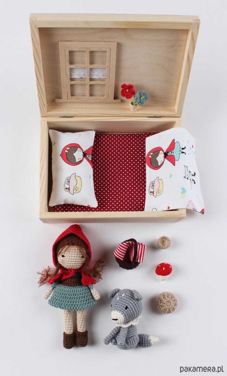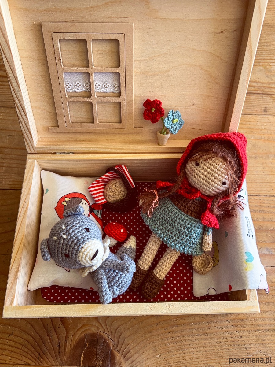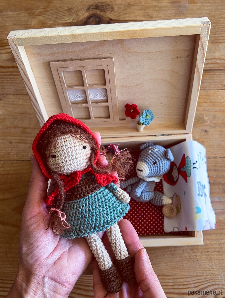Zanurz się w świat baśni z wyjątkowym, ręcznie wykonanym zestawem inspirowanym klasyczną opowieścią o Czerwonym Kapturku! W środku drewnianego domku znajdziesz misternie zrobioną na szydełku laleczkę Czerwonego Kapturka, uroczego wilka, pościel oraz koszyk z pysznym ciastem. Każdy element został wykonany z najwyższą starannością, tworząc idealną scenerię do zabawy pełnej wyobraźni. Ten niepowtarzalny zestaw nie tylko zachwyci dzieci, ale również będzie oryginalnym dodatkiem do wnętrza. Idealny na prezent dla miłośników rękodzieła i baśniowych przygód!