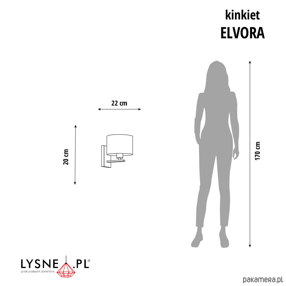 Kinkiet ELVORA to połączenie cylindrycznego abażuru otoczonego tkaniną i metalowej podstawy zachwycające elegancją i nowatorstwem. Kinkiet ELVORA świetnie prezentuje się pojedynczo lub jako instalacja świetlna, podkreślając wyjątkowy charakter każdego wnętrza. Sprawdzi się nie tylko jako produkt użytkowy, ale również jako oryginalny element dekoracyjny. Dobrze wkomponowane we wnętrza i optymalnie rozmieszczone tego typu lampy ścienne pozwolą rozjaśnić mroczny kąt i wyeksponować designerskie ozdoby. Dzięki możliwości indywidualnego doboru koloru stelaża i abażuru kinkiet idealnie wpasuje się w każdy styl pomieszczenia.