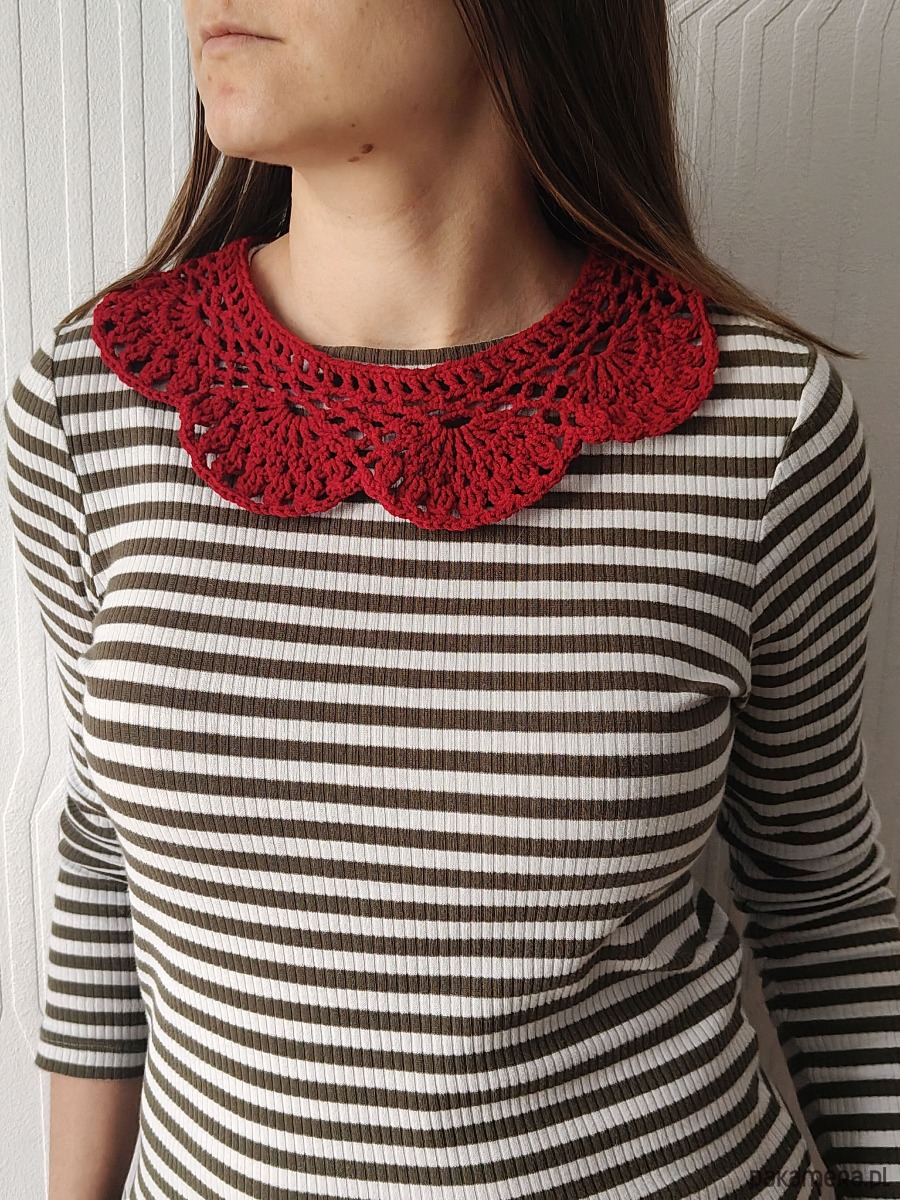 Stylowy koronkowy kołnierzyk wykonany ręcznie z włóczki na szydełku.