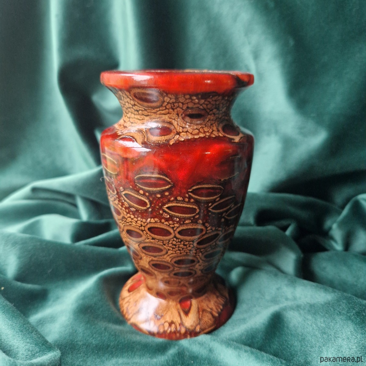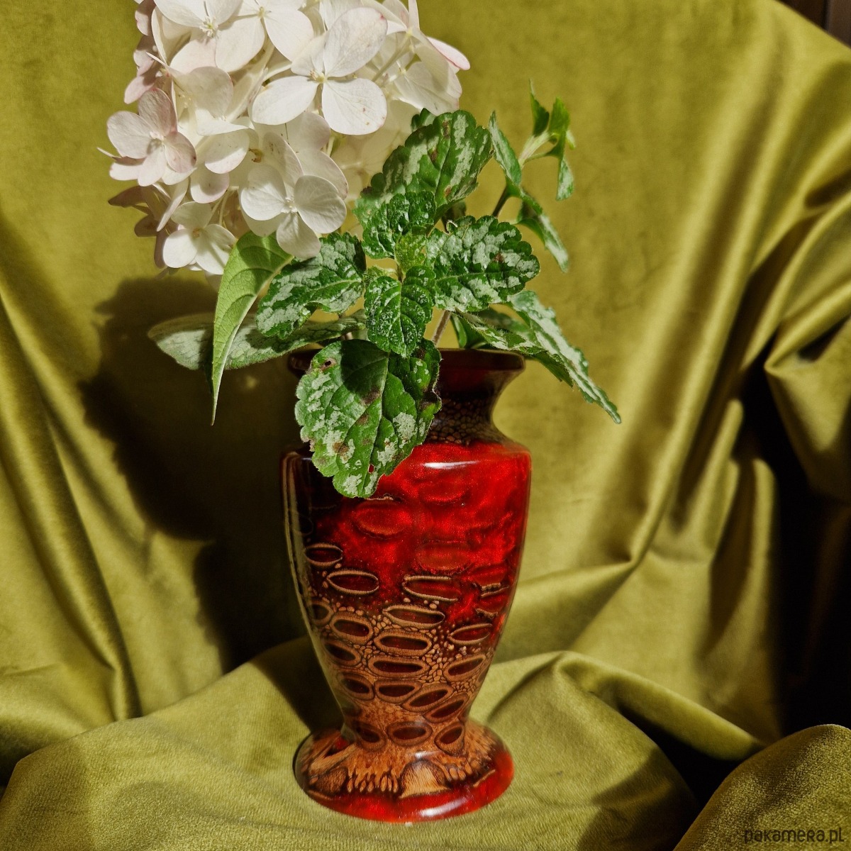 Czerwony wazon z żywicy epoksydowej z nasiennikiem Banksia