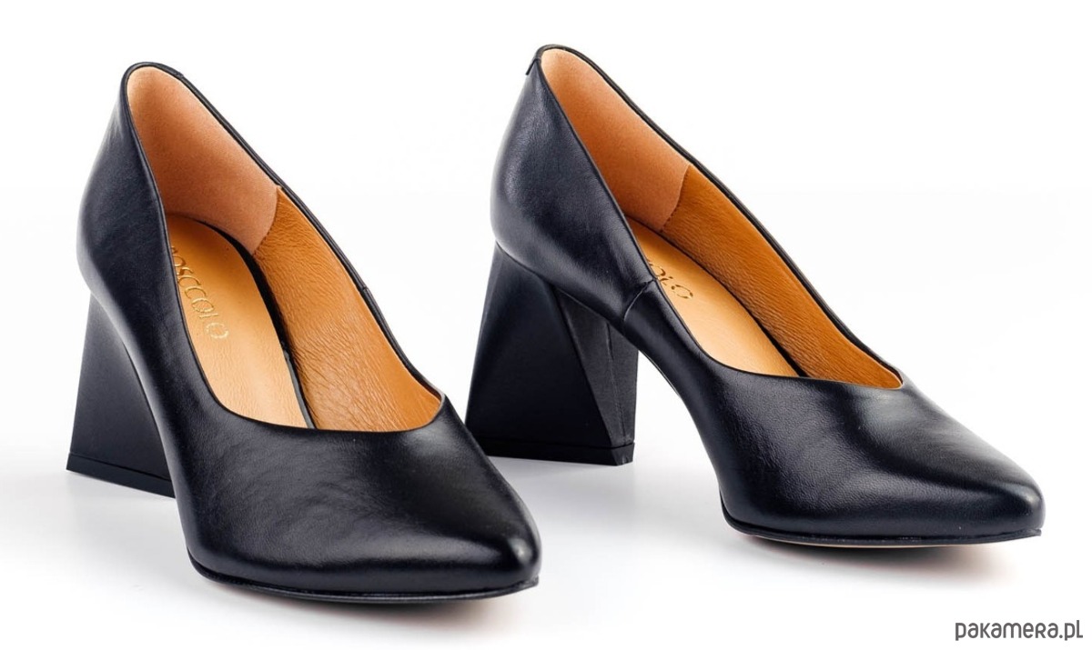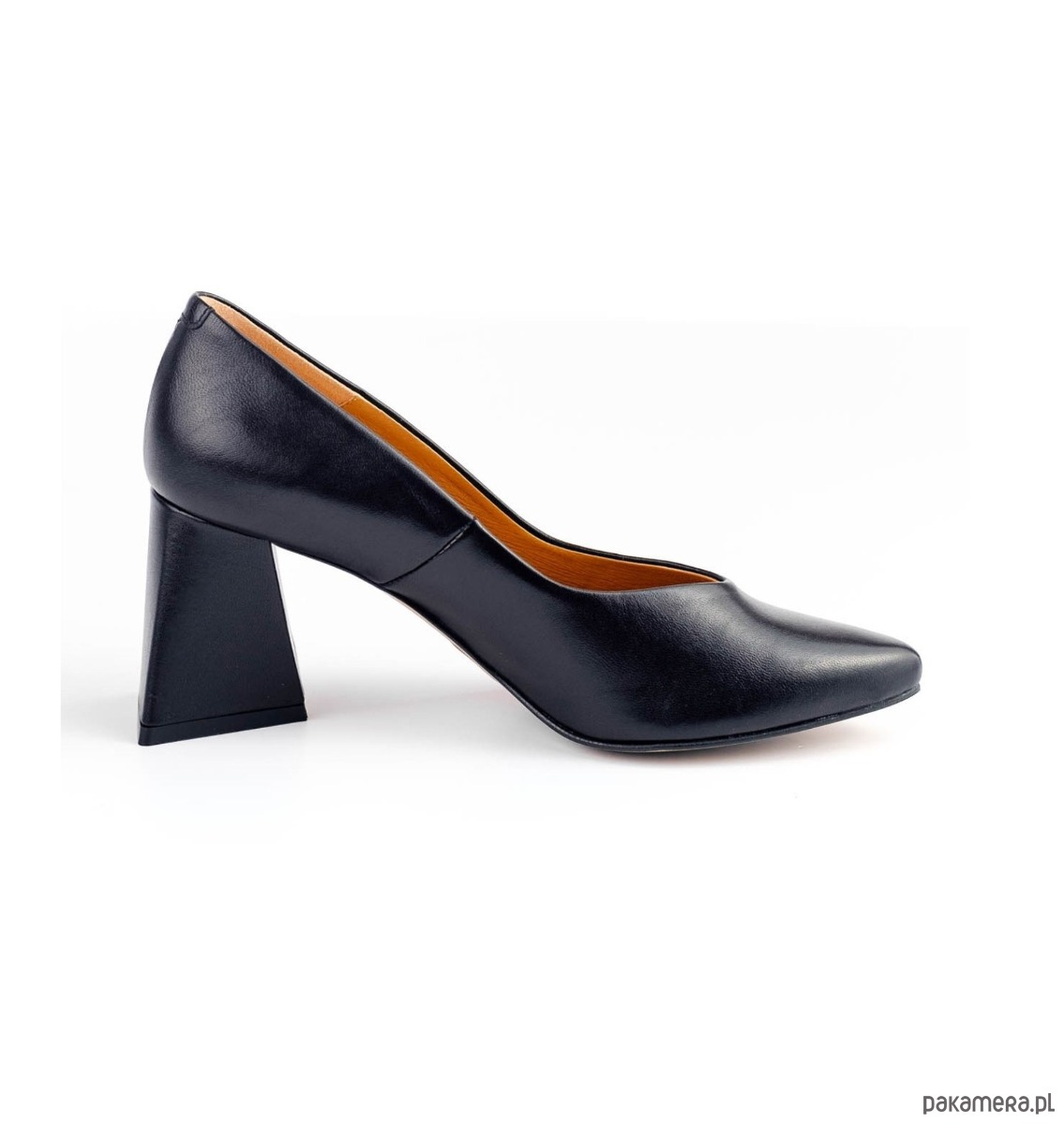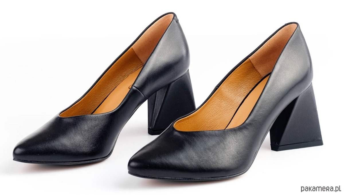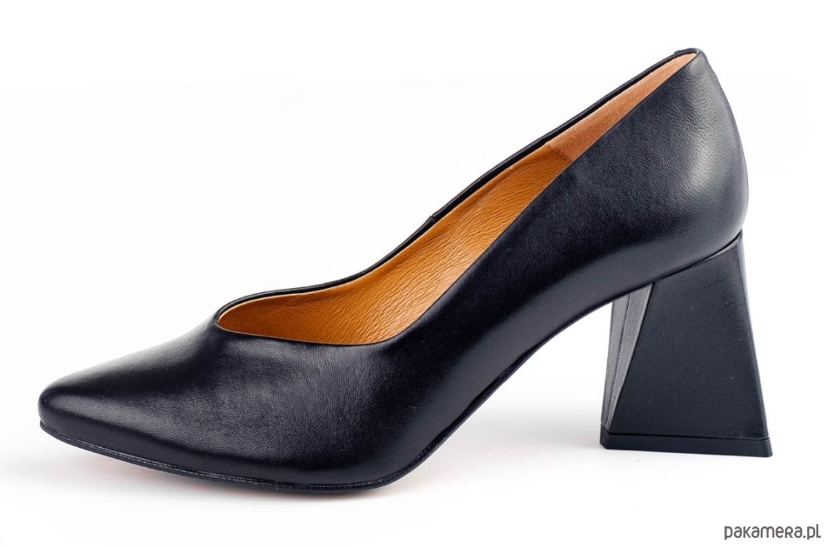Czółenko ze skóry naturalnej, bardzo miękkiej, wydłuźony przód, płytkie wycięcie sparawiające,