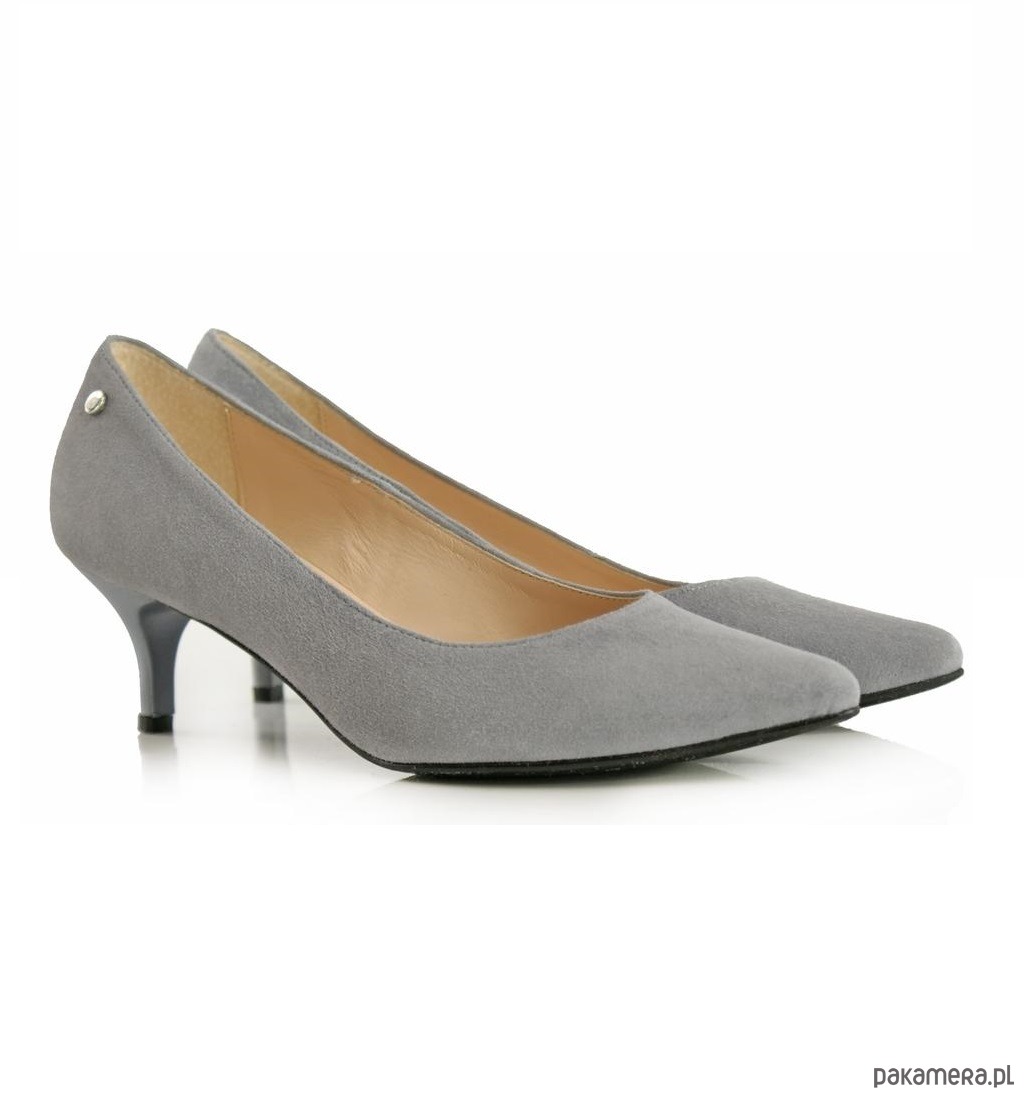 Eleganckie czółenka ze skóry naturalnej, zamszowej, na niskiej szpilce.