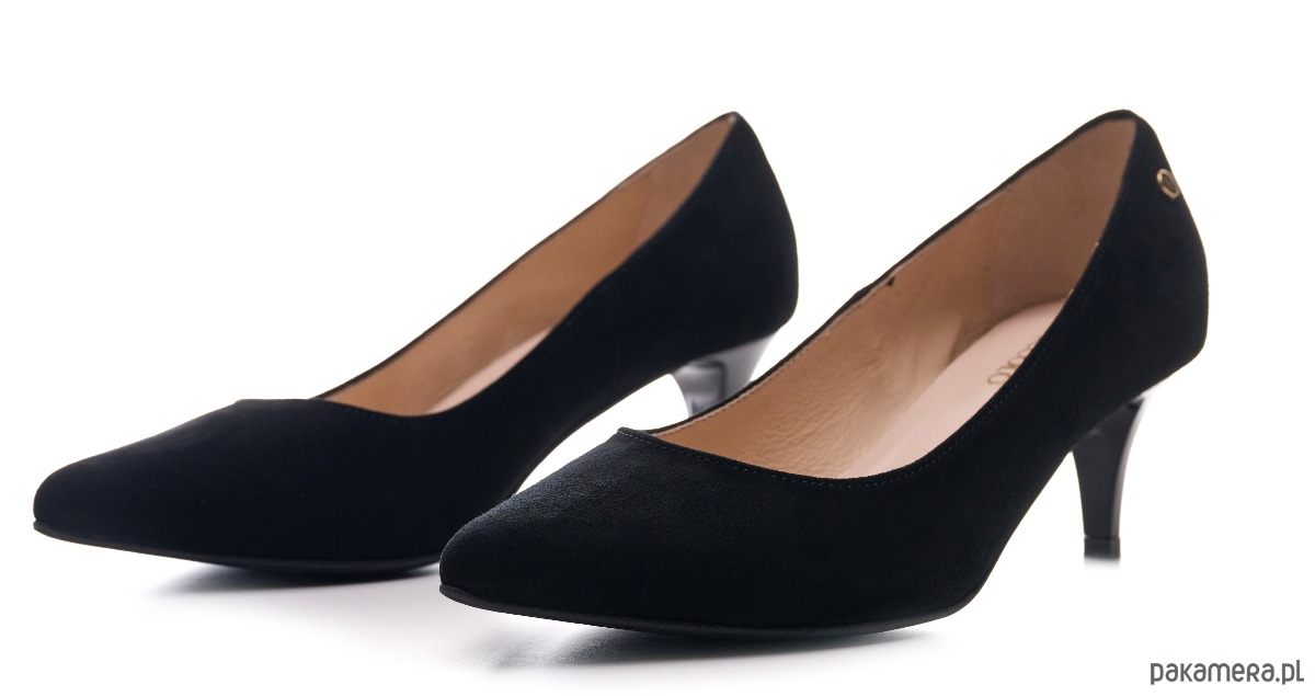 Eleganckie czółenka ze skóry naturalnej na niskiej szpilce, skóra zamszowa, bardzo miękka, idealnie dopasowująca się do stopy.