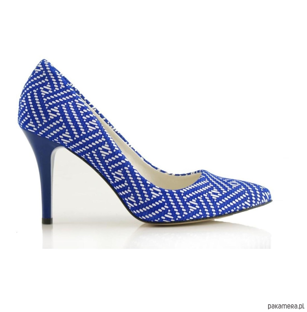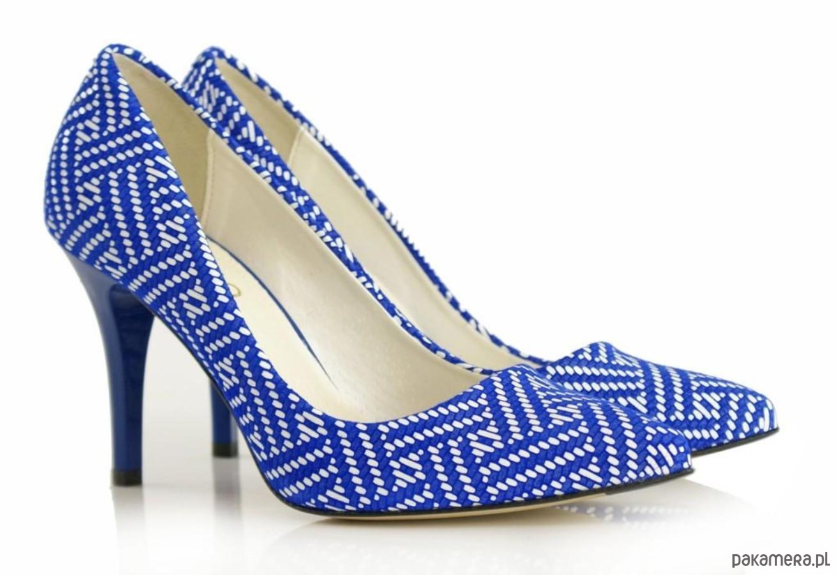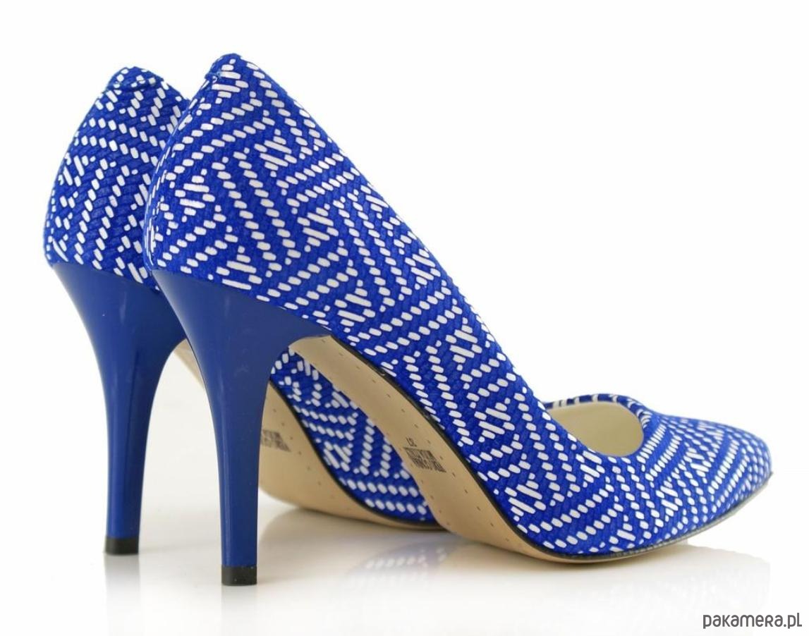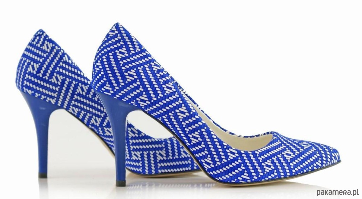 Eleganckie czółenka ze skóry naturalniej, wzory geometryczne, na szpilce.